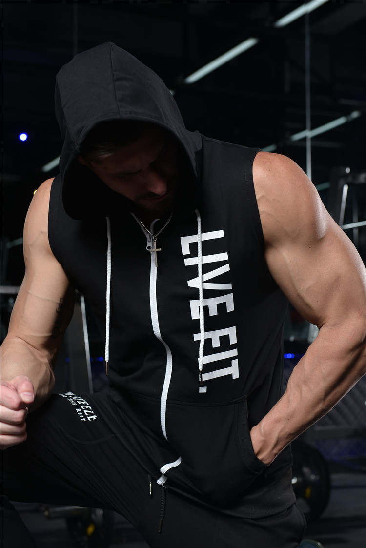Fitness Sports Training Vest Men's Autumn And Winter Running Casual Hooded Vest Sleeveless Sweatshirt