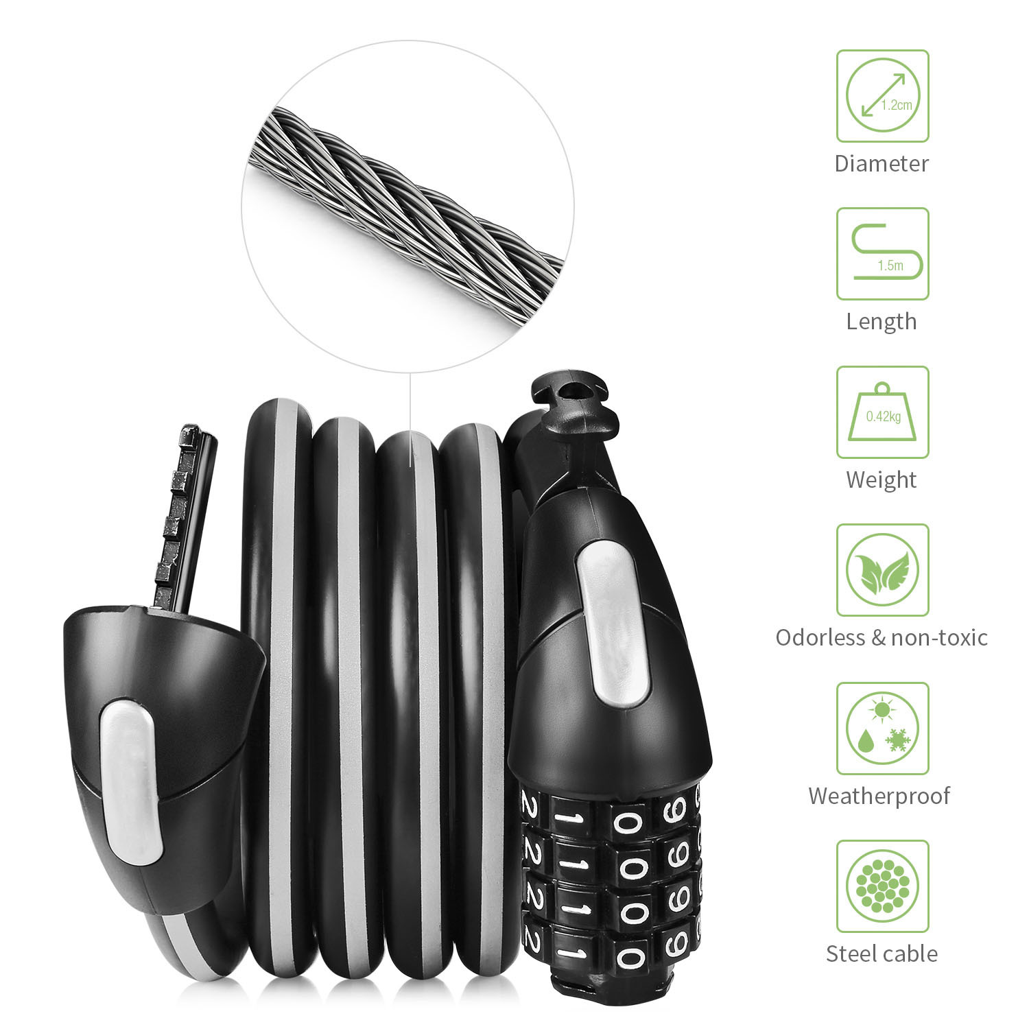 Mountain Bike Lock,Bicycle Lock,Password Lock,Anti-theft Lock,Road Luminous Steel Cable Lock,Bicycle Reflective Password Chain Lock