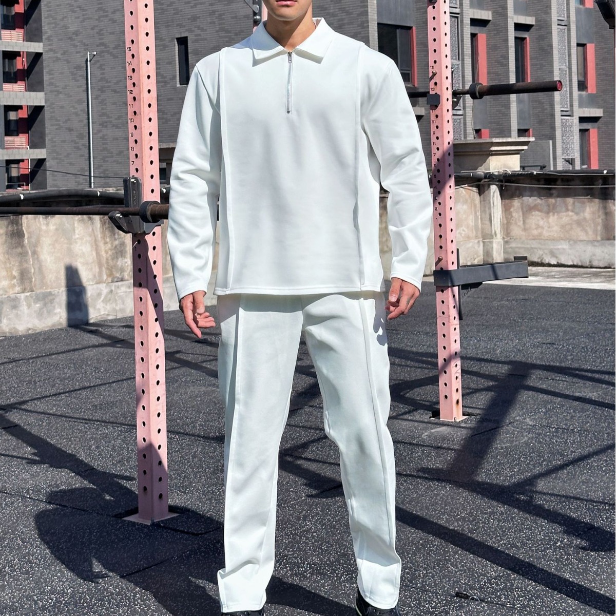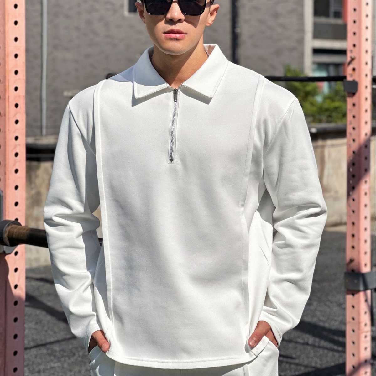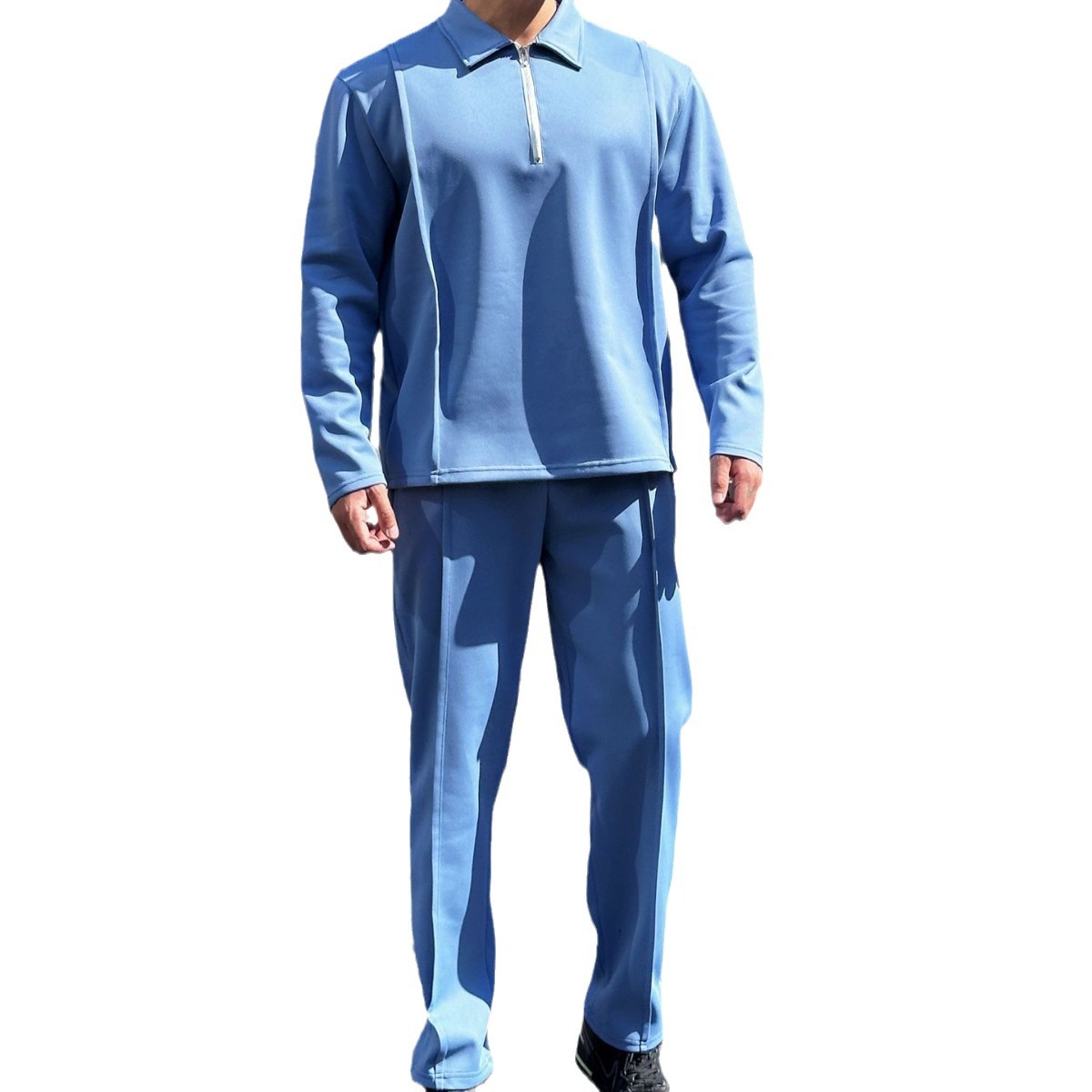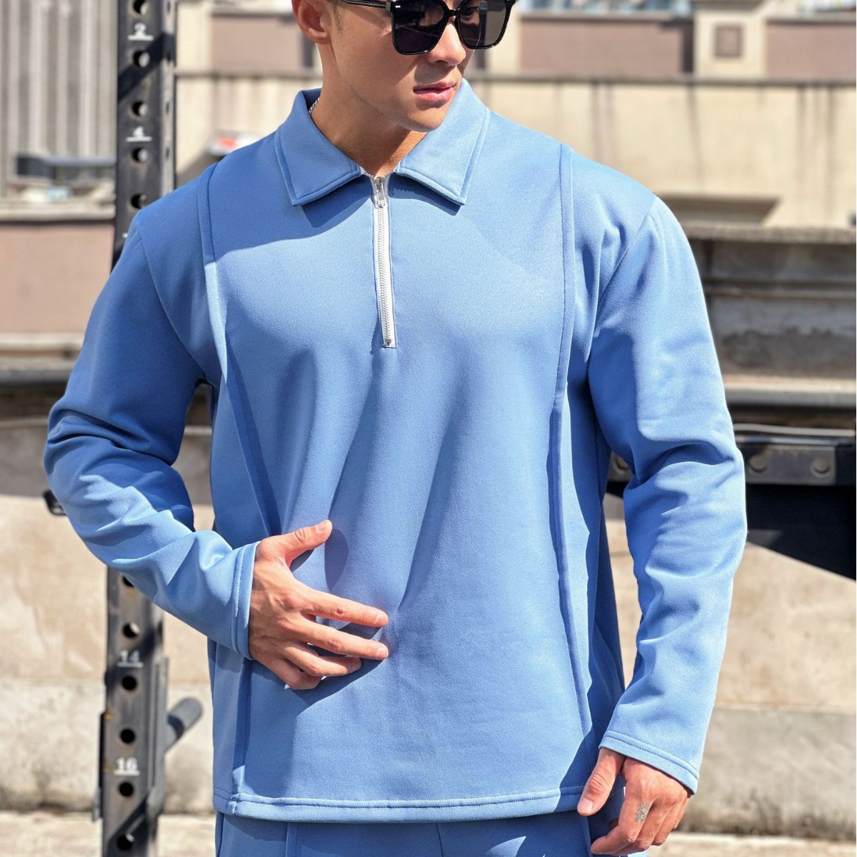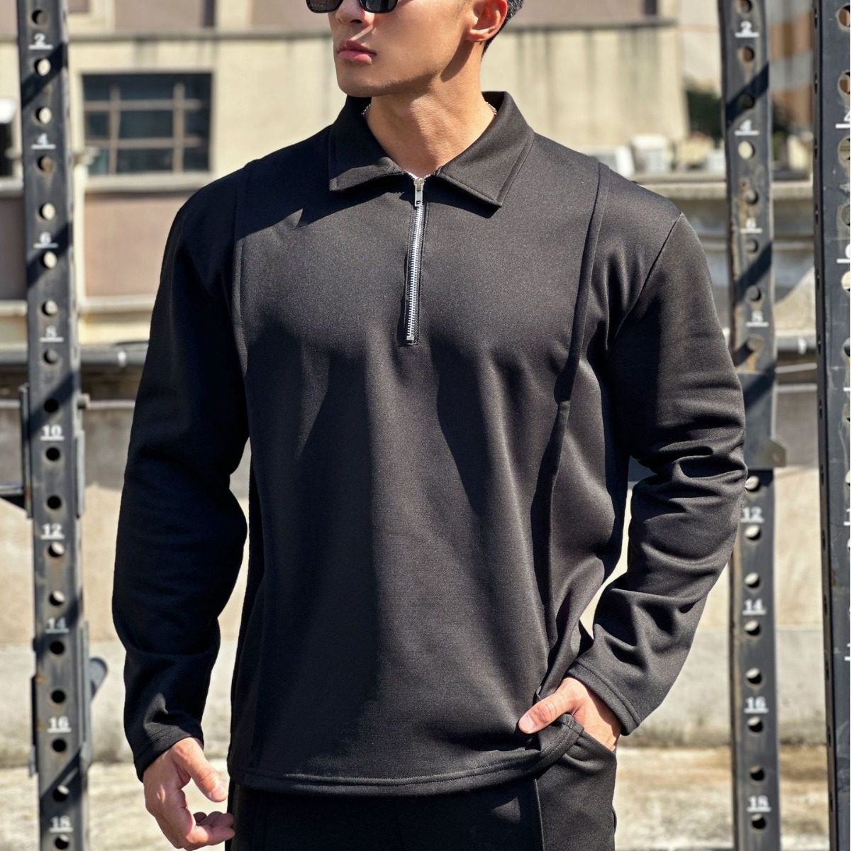 Fitness Muscle Popular Fashion Men's Autumn And Winter Long-sleeved Top Zipper Shirt Sports POLOShirt Simple