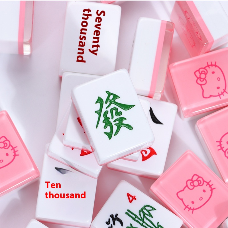 Acrylic Mahjong Pink Hello Kitty Hand-rolled Mahjong Tiles Cute Cartoon Mahjong 34mm Processed Mahjong