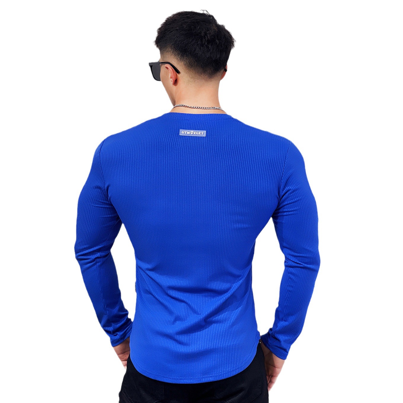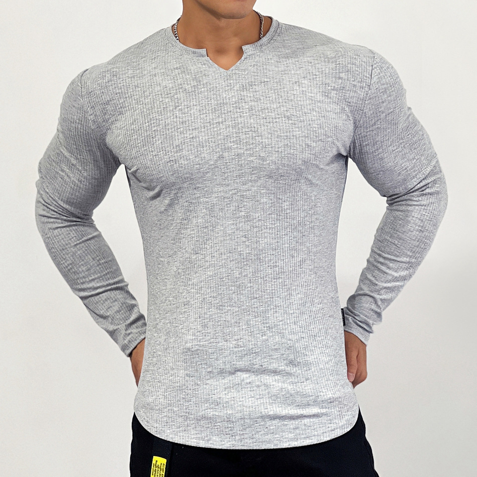 Muscle Sports Semi-tight Fitness Long-sleeved Men's Basketball Autumn Running Training Solid Color Striped Stretch Sports T-shirt