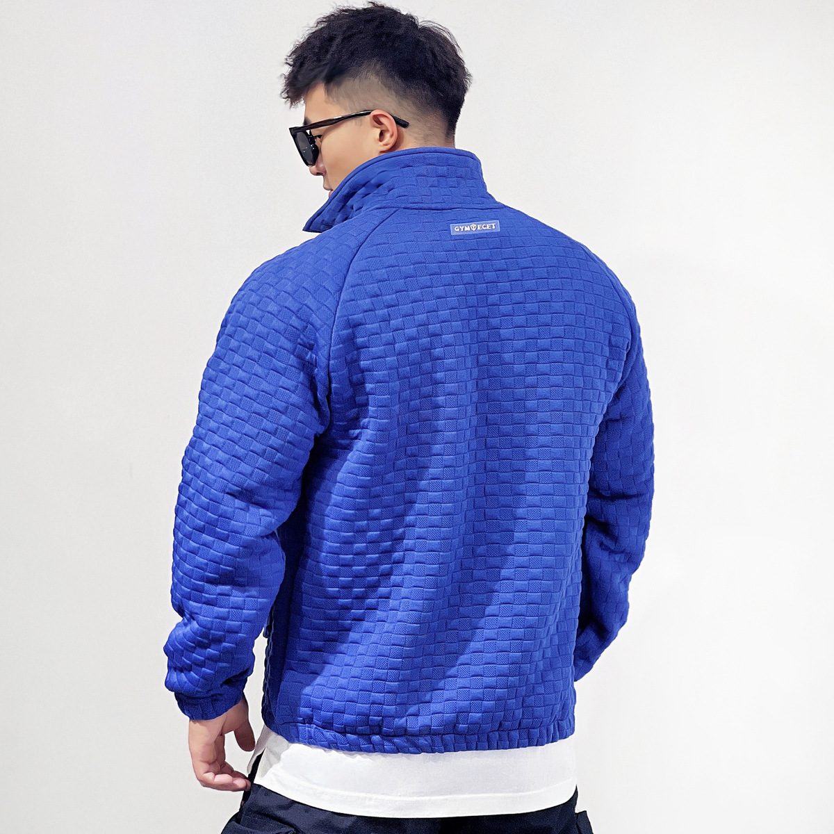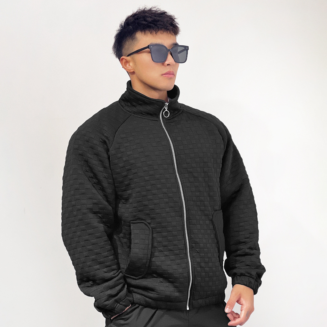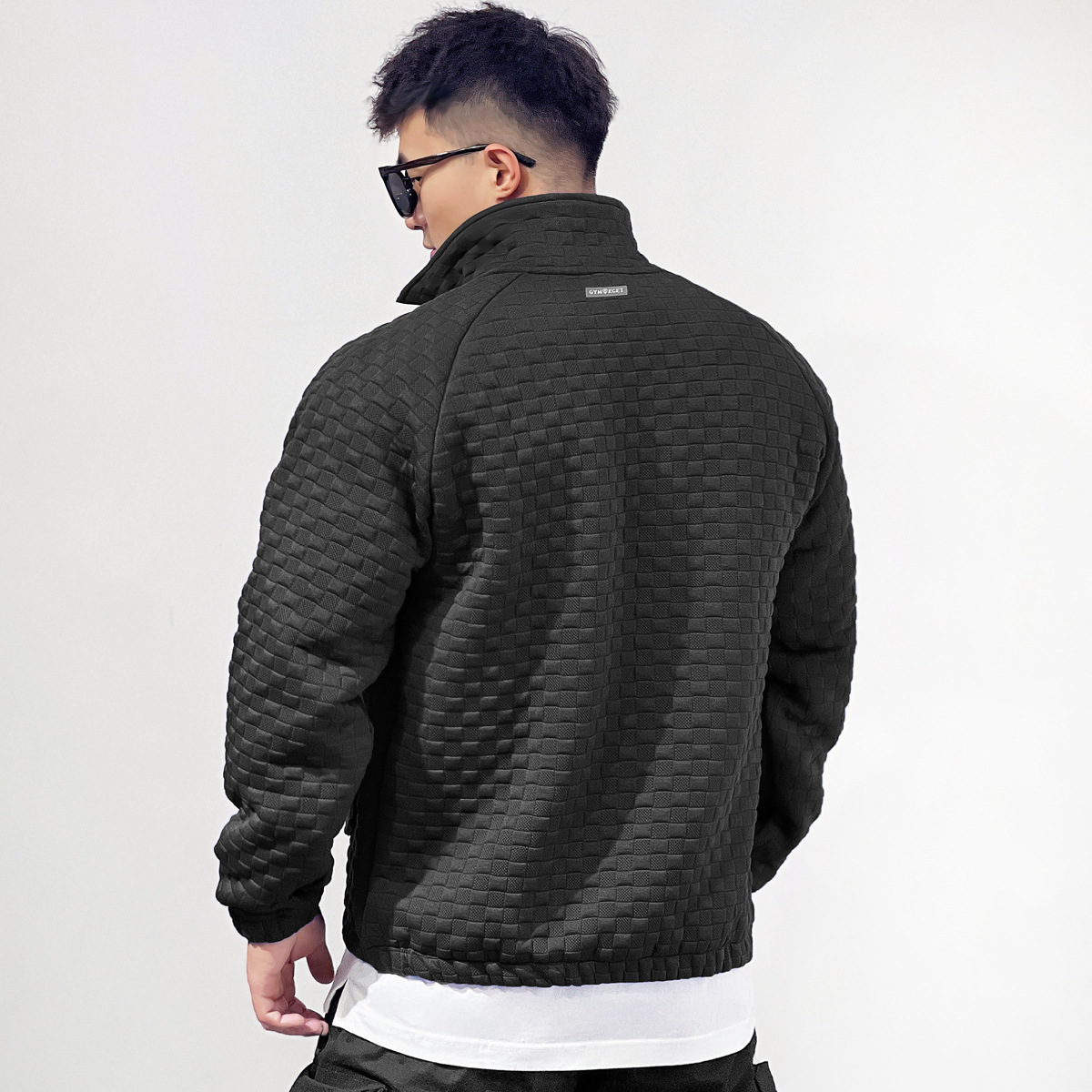 Sports Fitness Muscle Waffle Jacket Men's Autumn Loose Cardigan Zippery Casual Solid Color Stand Collar