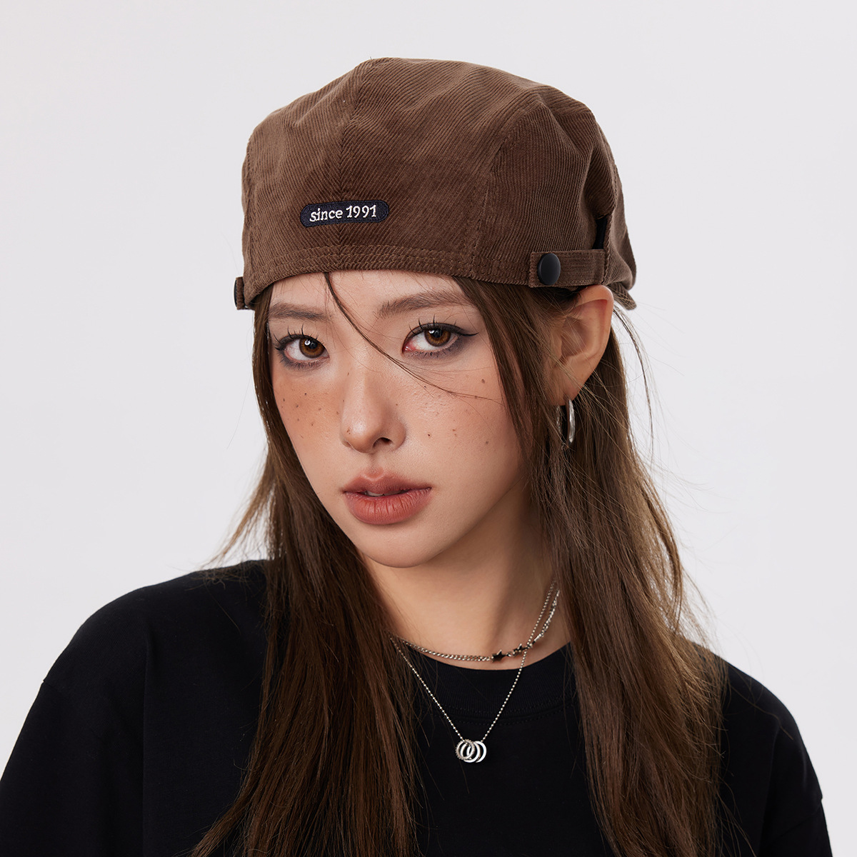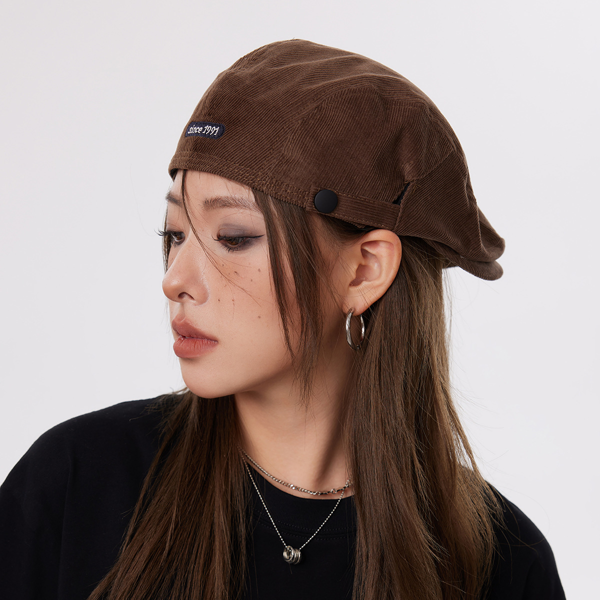 American Hot Girl Brown Reverse Wearing Forward Hat Female Street Brown Painter Beret Detectivesboy Hat Maley