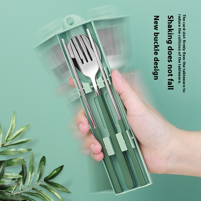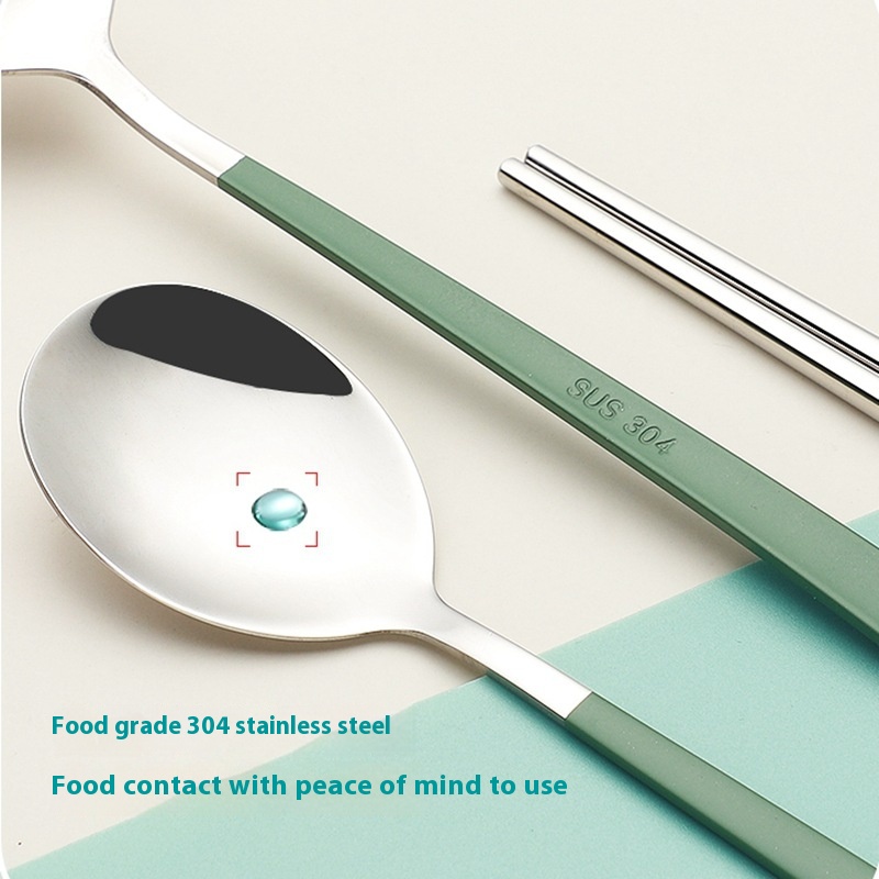 304 Stainless Steel Spoon, Fork And Chopsticks Three-piece Set Portable Tableware Pull-out Box Creative Student Travel And Camping Tableware