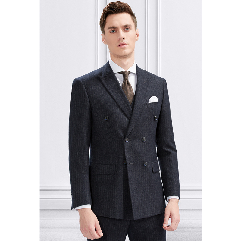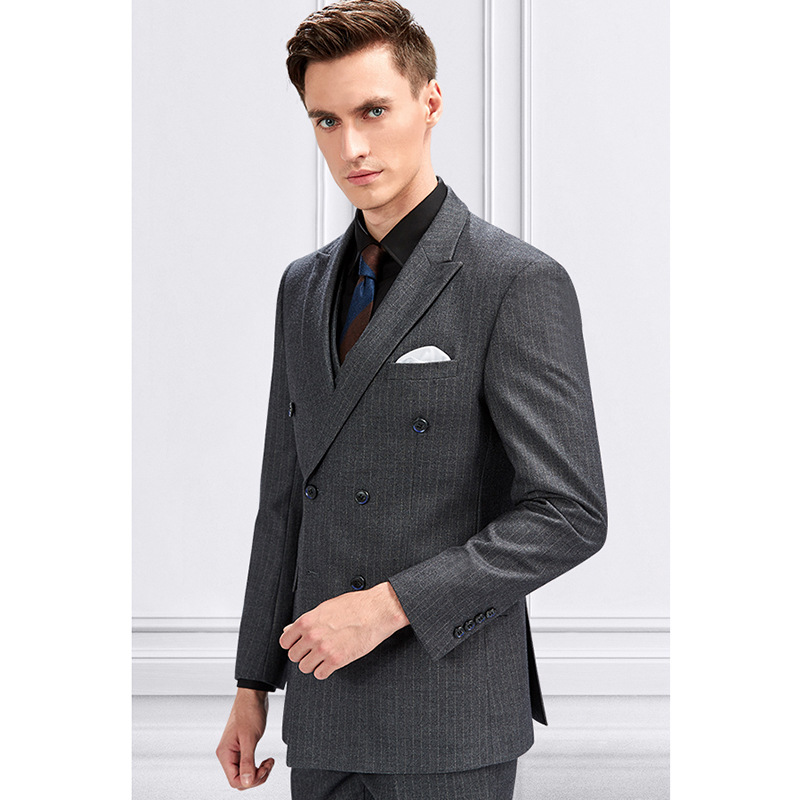 Double-breasted Suit Men's Suit British Gray Stripe Business Casual Suit Men's Formal Fit Groom's Wedding Dress
