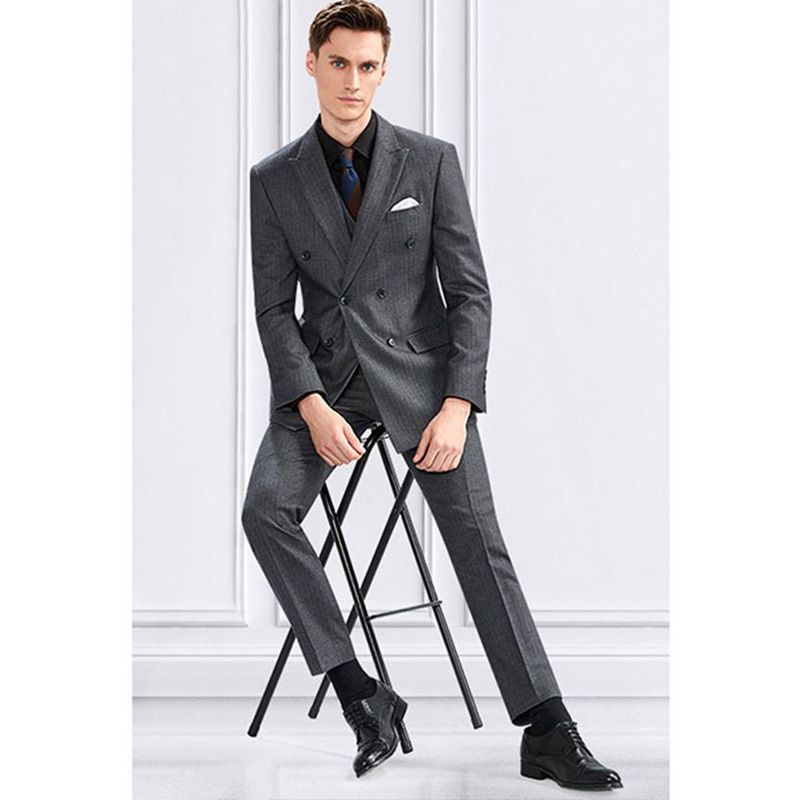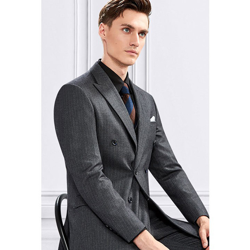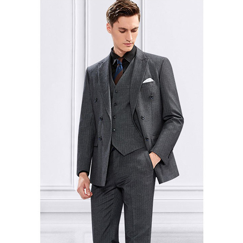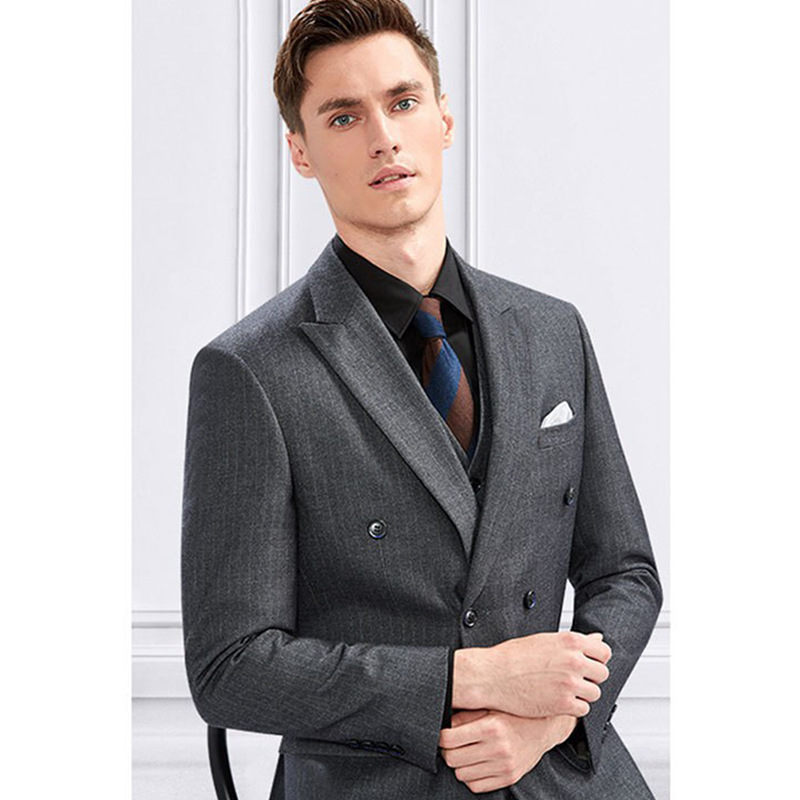Double Breasted Suit Suit Men's Spring Slim British Light Gray Striped Suit Host Groom Wedding Dress