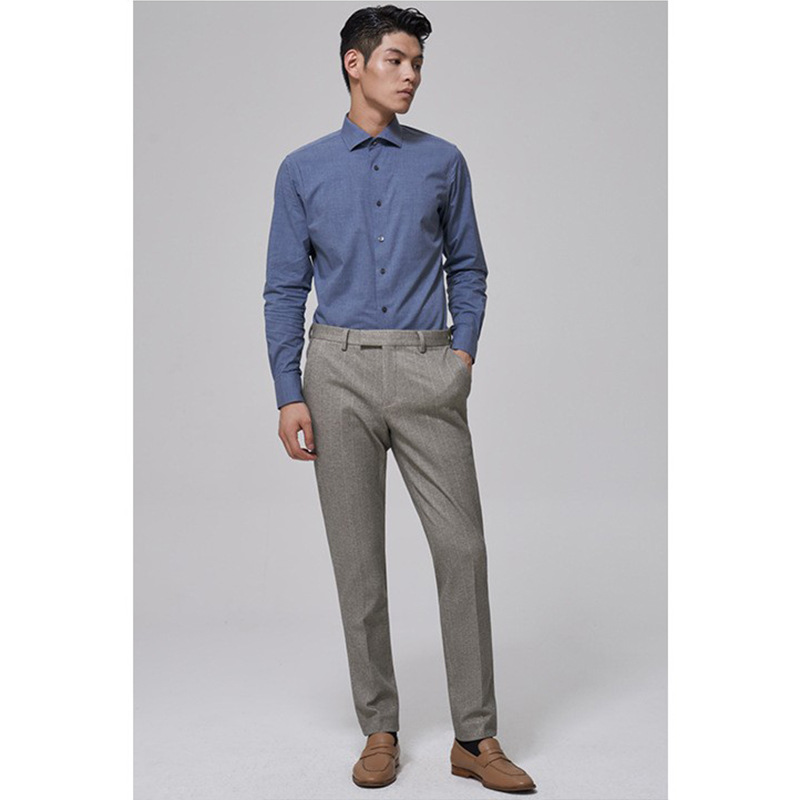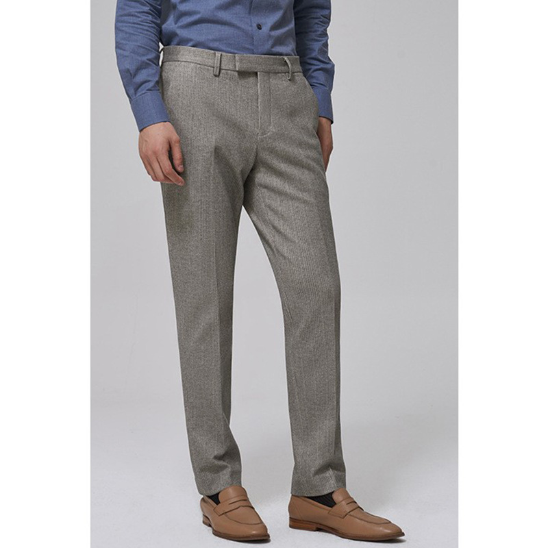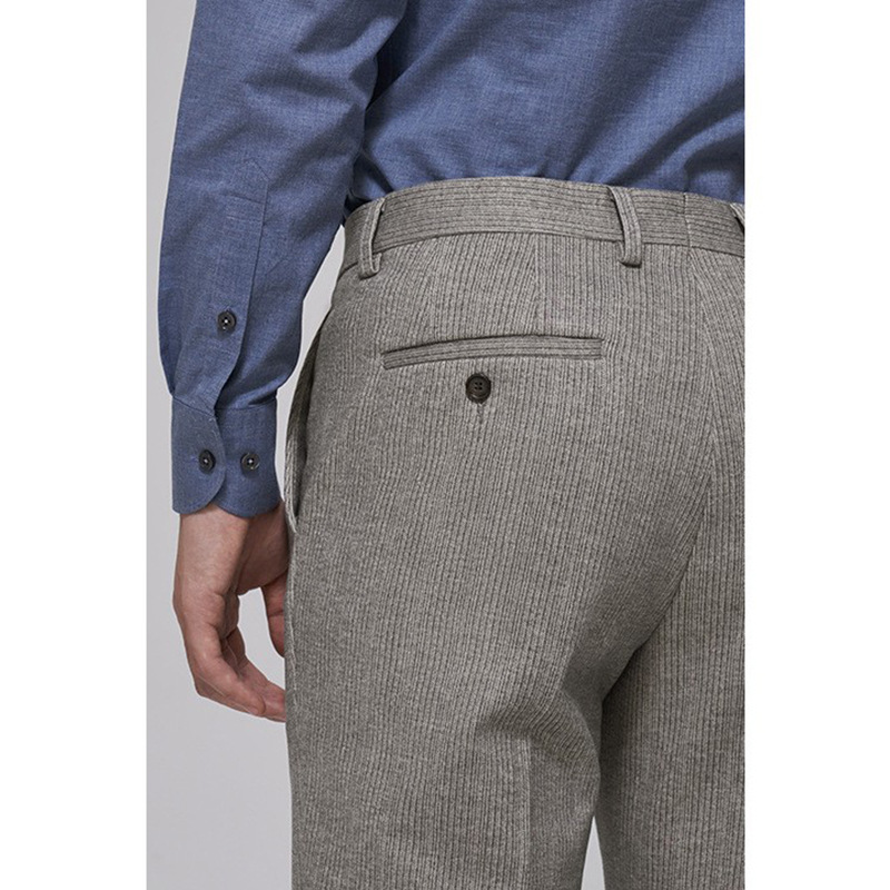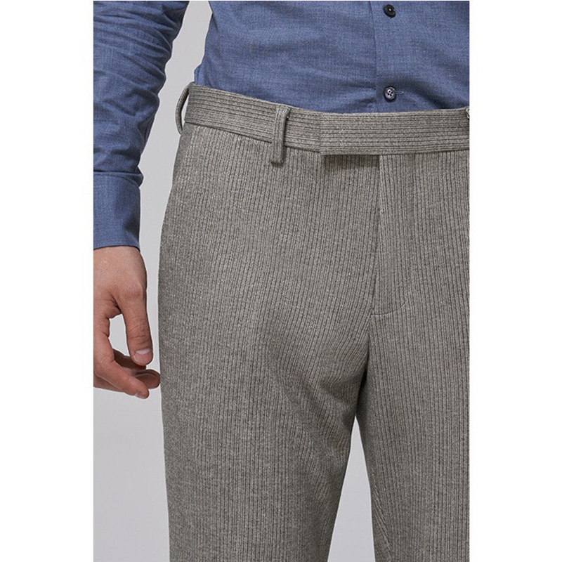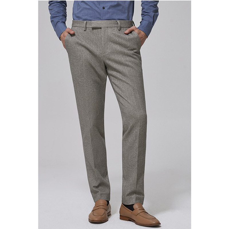 Autumn And Winter Woolen Business Casual Pants For Men,Gray Striped,Slim,Thick,Drapey,Fashionable Suit Pants