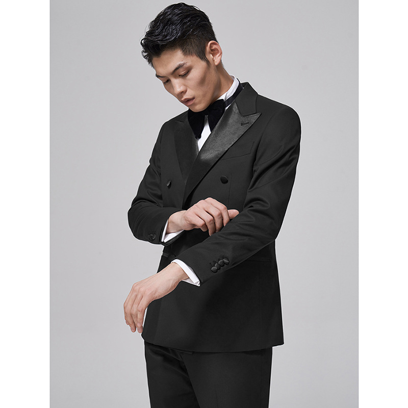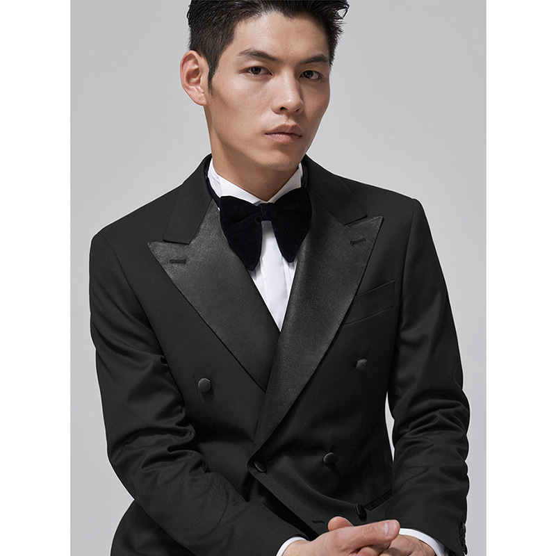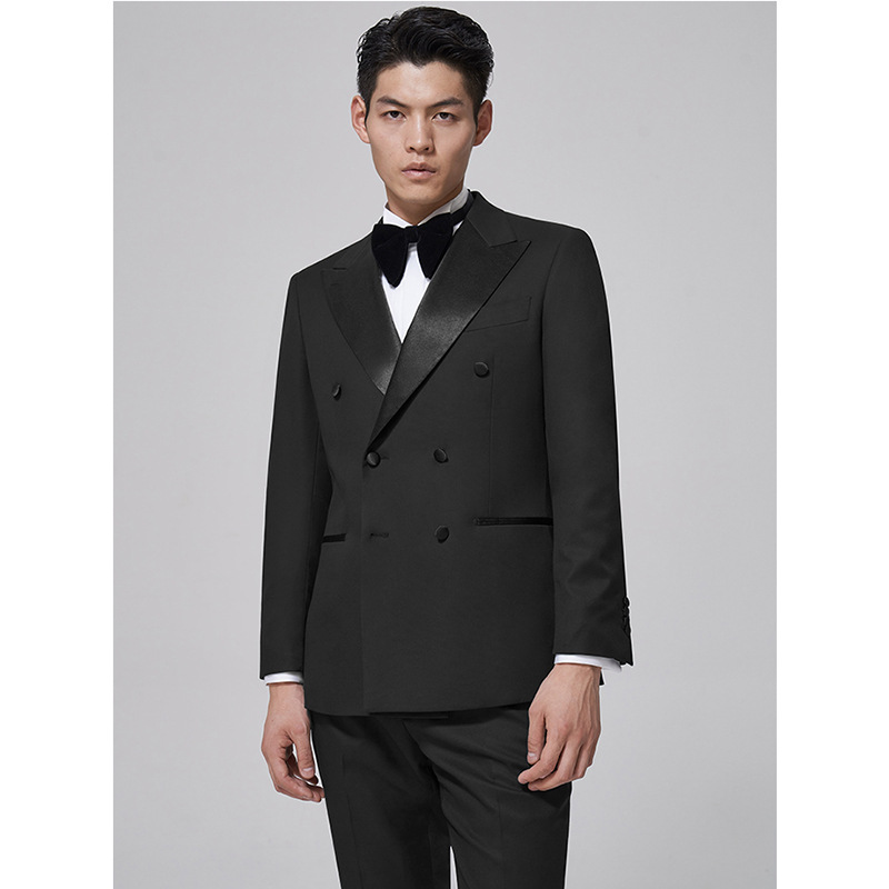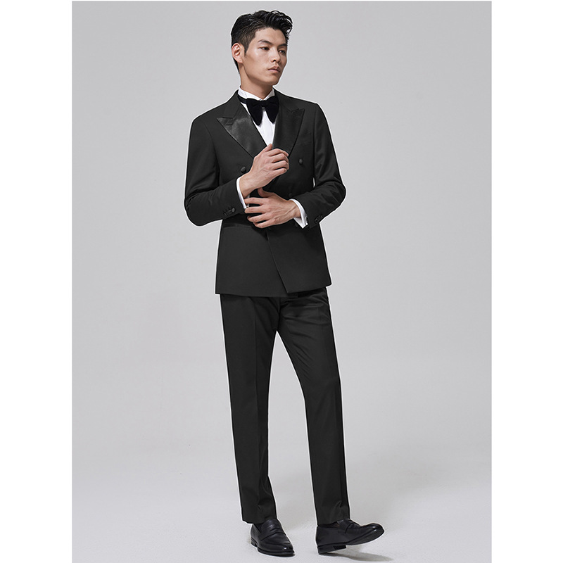 Suit,Gentleman,Black Dress,Lapel Collar,Double Breasted,Groom,Wedding Host,Slim Suit For Men