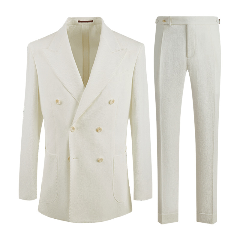 Autumn Style Italian Breathable Seersucker Suit,No-iron Double-breasted Casual Suit,Fashionable Gentleman Suit