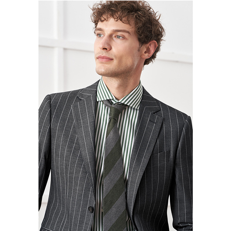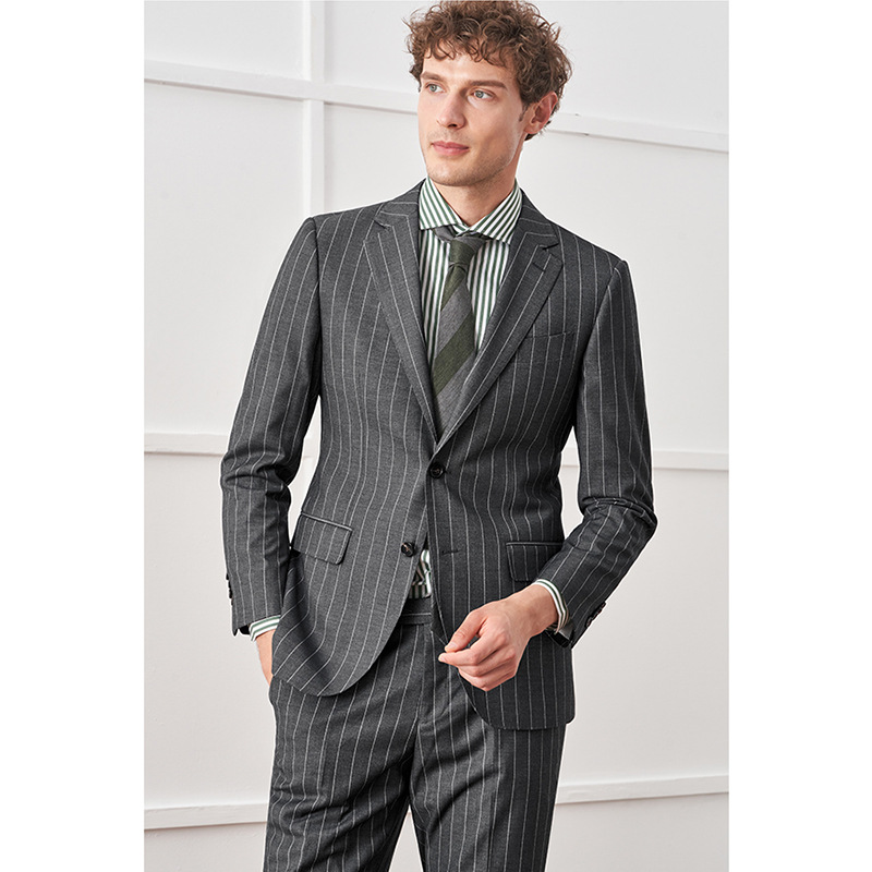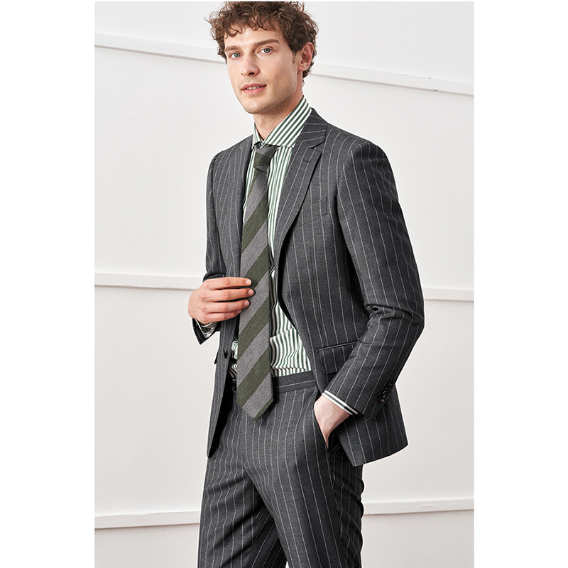 Italian Striped Suit Men's Gray Business Casual Professional Fit Suit Men's Xinlang Wedding Dress