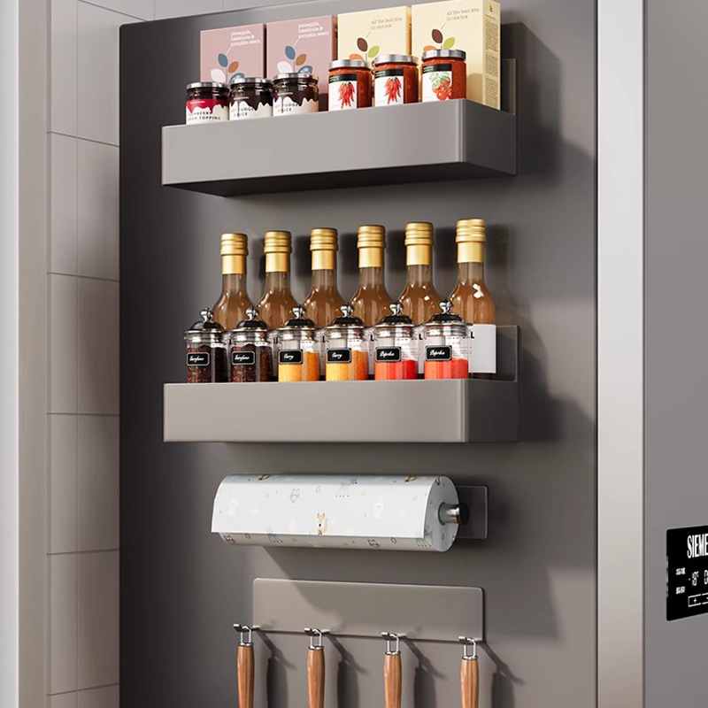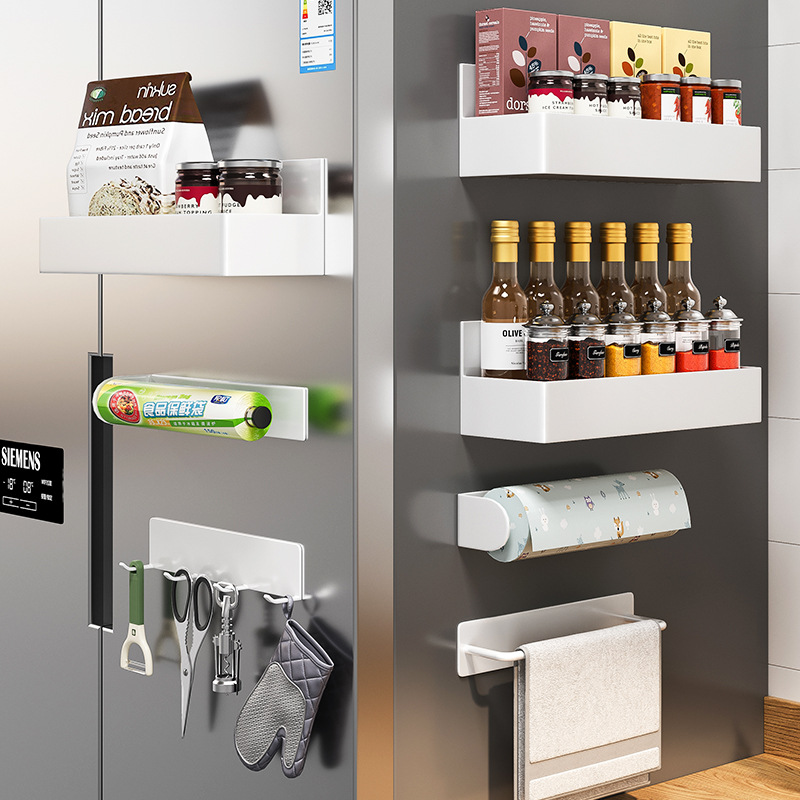 Magnetic Refrigerator Storage Rack Wall-mounted Side Storage Rack Kitchen Paper Towel Punch-free Roll Paper Bag Hanging Rack