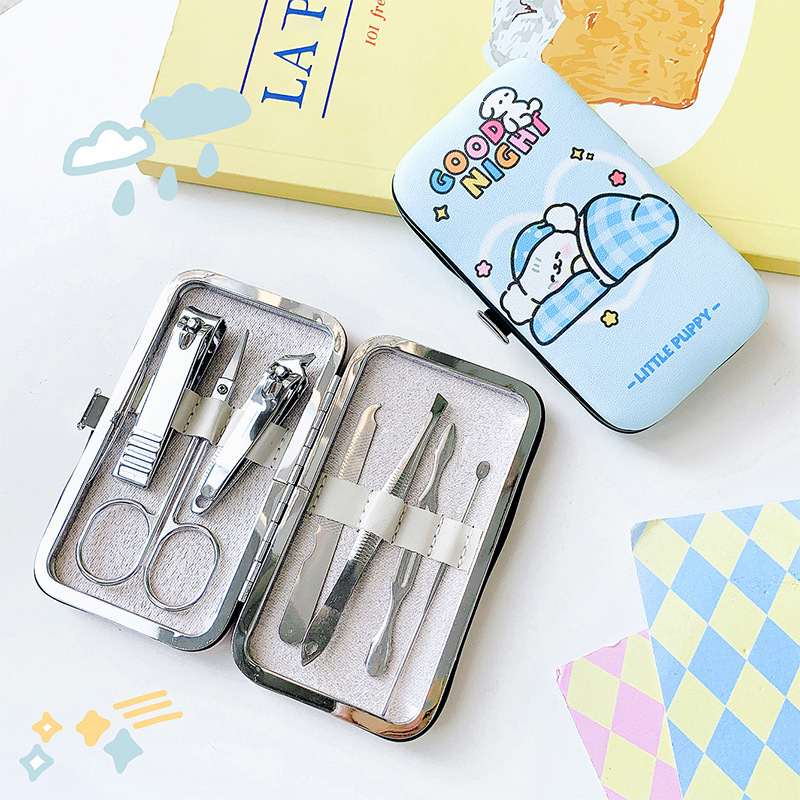 Kapibala Nail Clipper Seven-piece Manicure Tool Set Student Girl Heart PUMetal Manicure Set