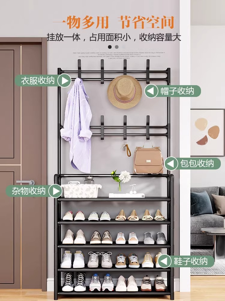 Shoe Rack Simple Doorway Household Integrated Clothes Hanger Storage Shoe Cabinet Coat Rack Dormitory Hot Style Rental House