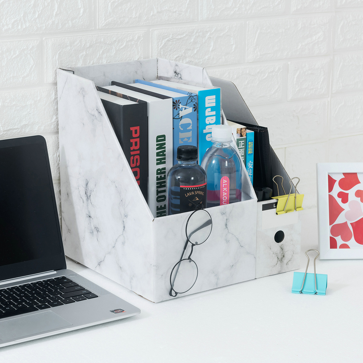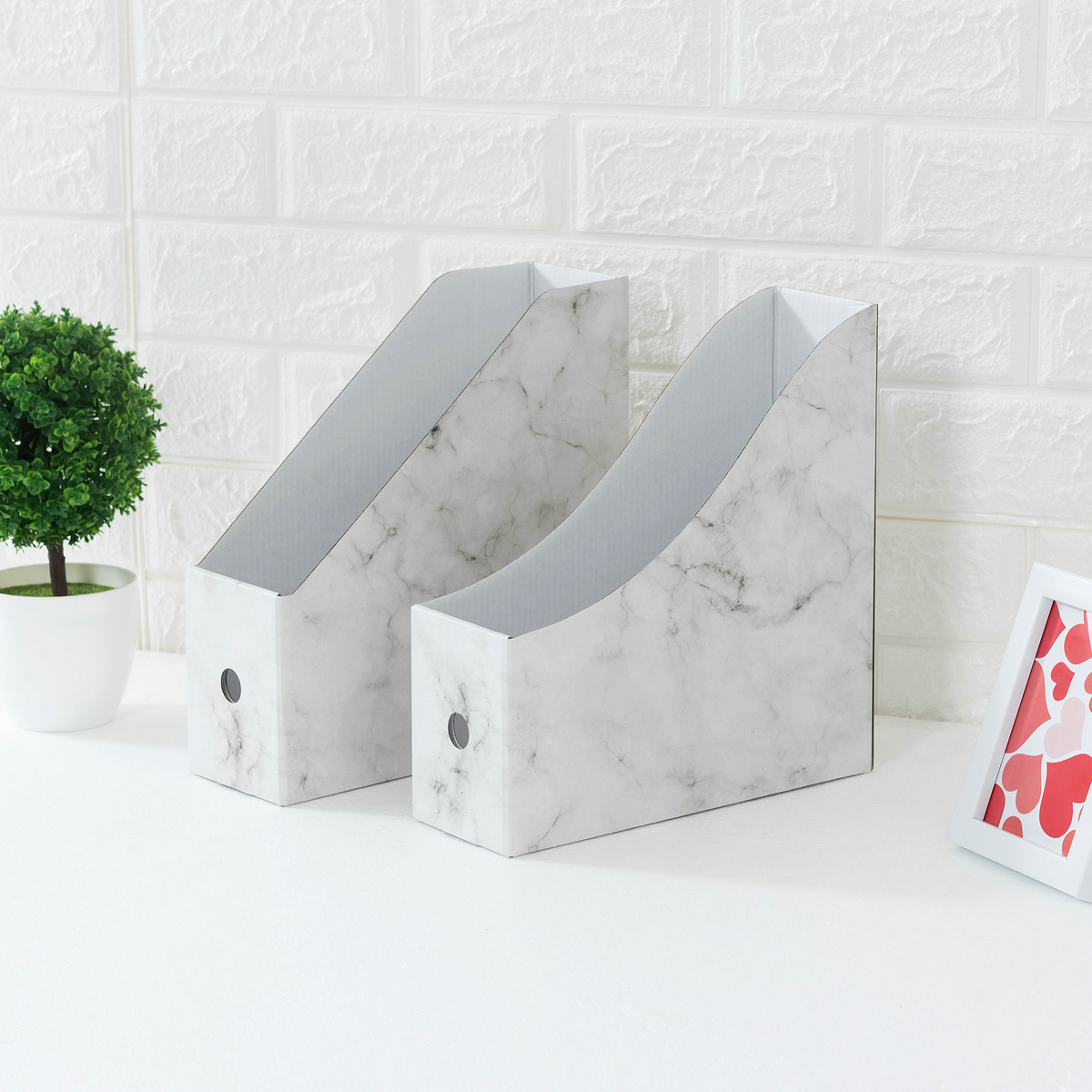Nordic Style Bookend Box Marble Pattern Student Desktop Storage Box Large Capacity Bookshelf Office File Rack