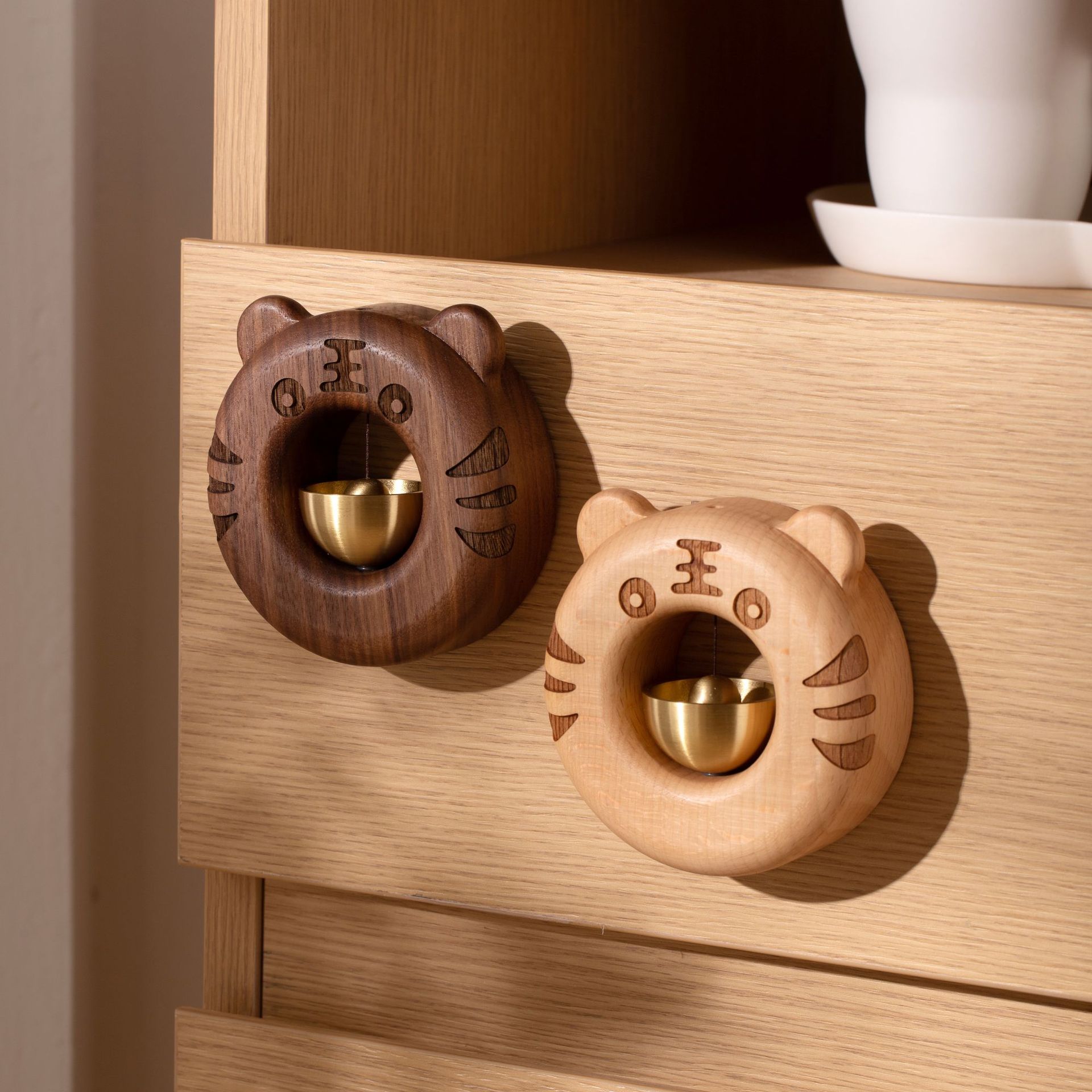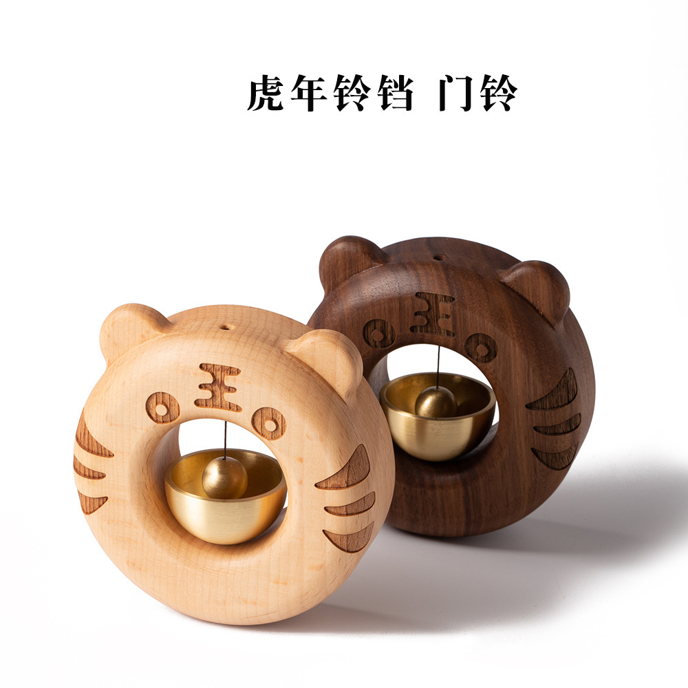Japanese Tiger Ring Solid Wood Doorbell Creative Entrance Door Refrigerator Hanging Bell Wooden Suction Door Wind Chime