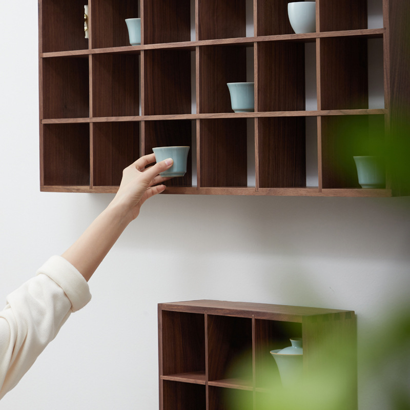 Black Walnut Wall-mounted Duobao Pavilion Tea Cup Ornaments Storage Rack Chinese Style Solid Wood Desktop Archaic Rack Wall Hanging