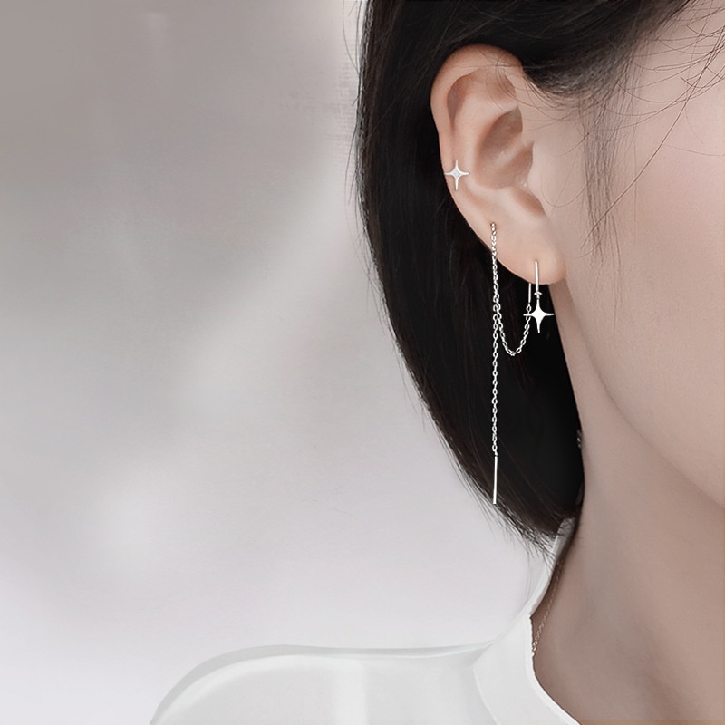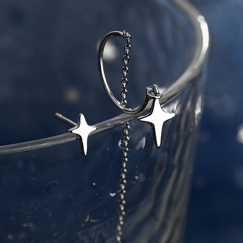 Gumaoning A B Style Earrings For Women Korean Style Long Dark Cool Handsome Chain Cross Star Asymmetrical Earrings