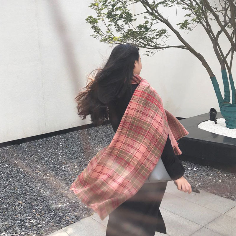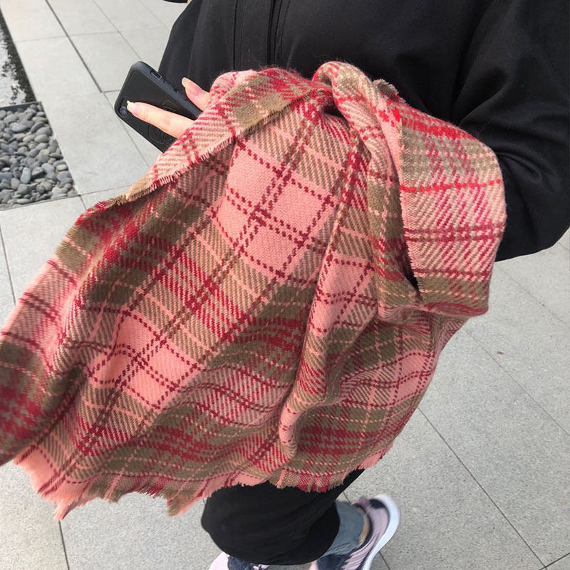Recommended~ACPink Plaid Scarf Thickened Classic Plaid Long Large Shawl Warm Casual Women's Autumn And Winter Scarf