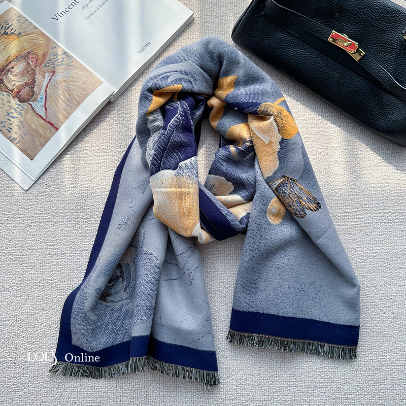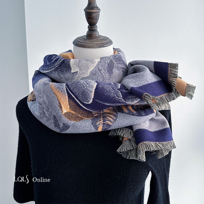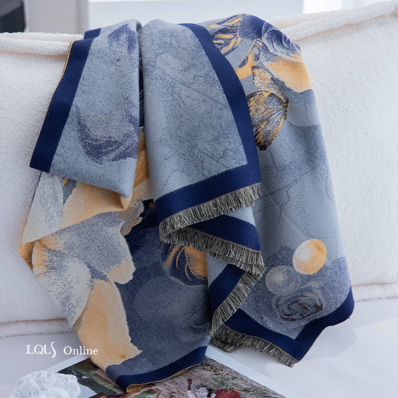 Intellectual Autumn Orchid Double-sided Flower Pattern Scarf,Large Size Shawl For Office Wear,High-end Gift For Mother In Winter