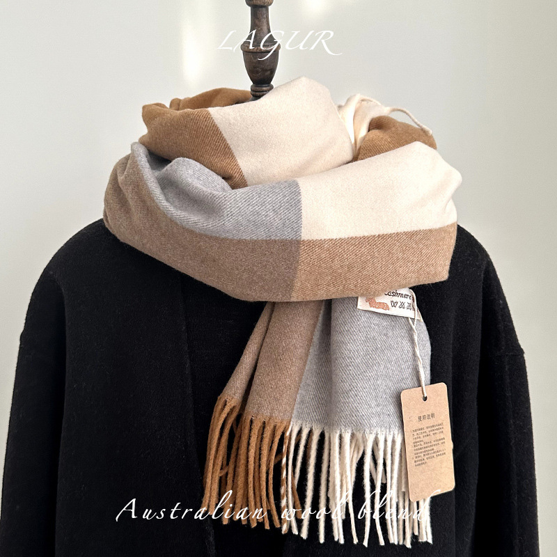 Classic Brown Heavyweight Thickened Wool Blended Plaid Scarf To Keep Warm For Men And Women,Style Scarf For Winter Women