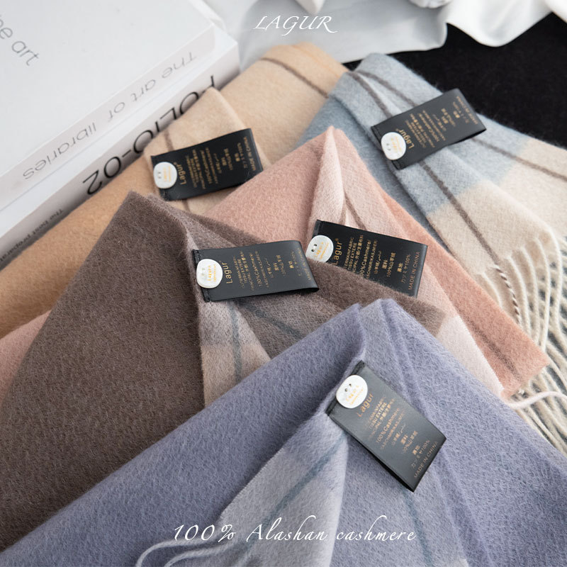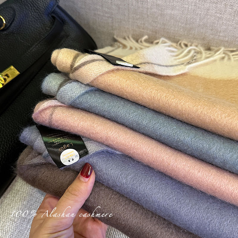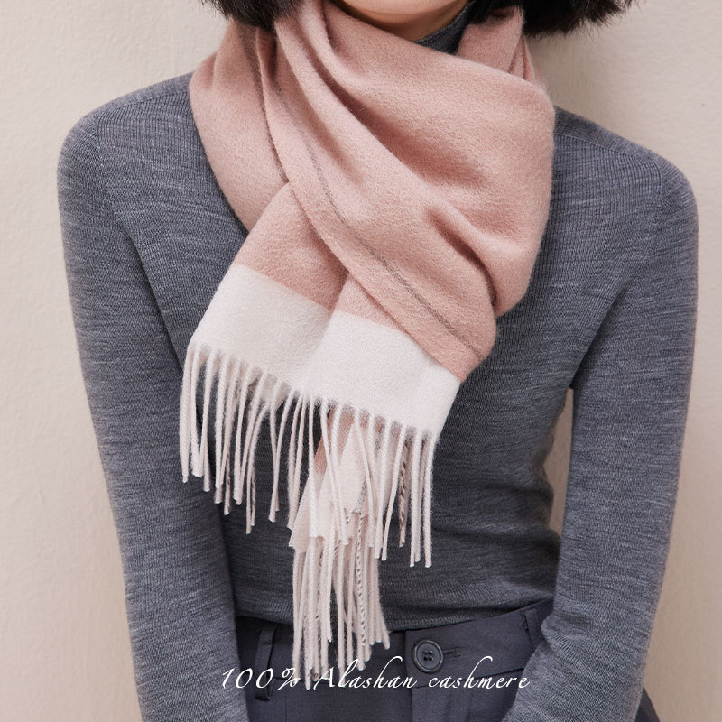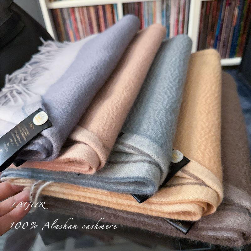 Italian Simple Luxury Boutique Cashmere Water Rippled Pure Cashmere Double-sided Contrast Scarf Couple Style Winter Women