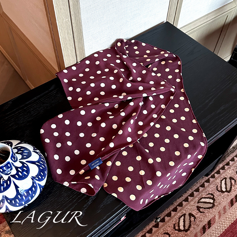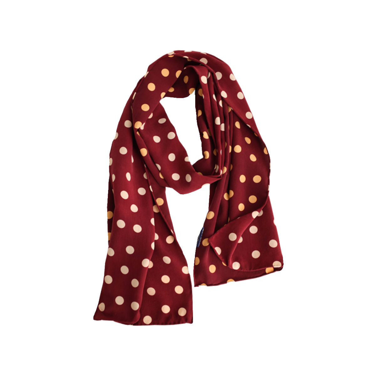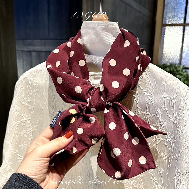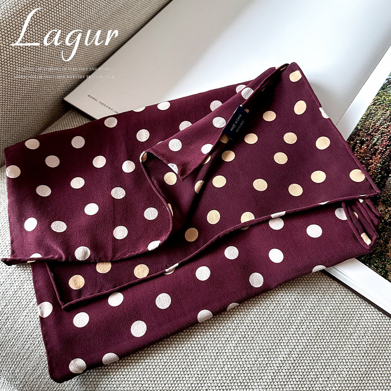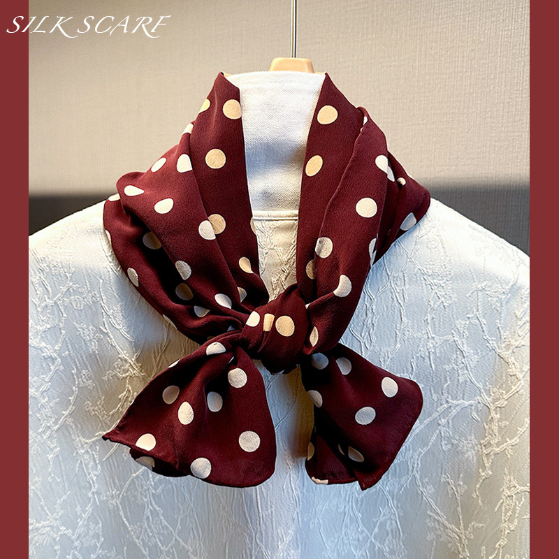Handmade Double Wrinkles丨100%Mulberry Silk Bordeaux Red Polka Dot Silk Double-sided Thin Scarf Spring And Autumn High-end Silk Scarf