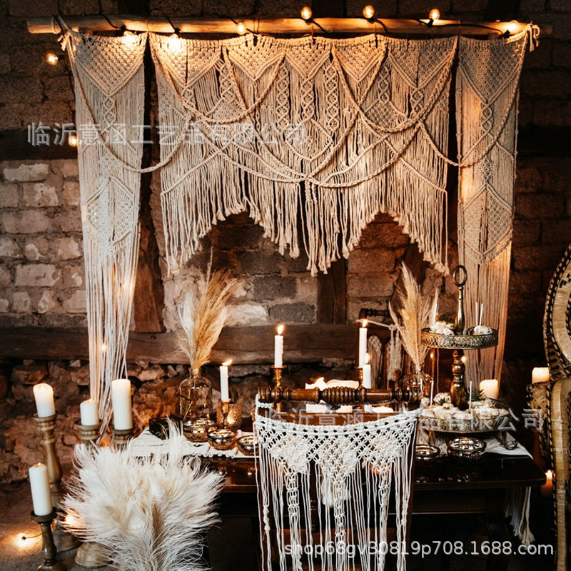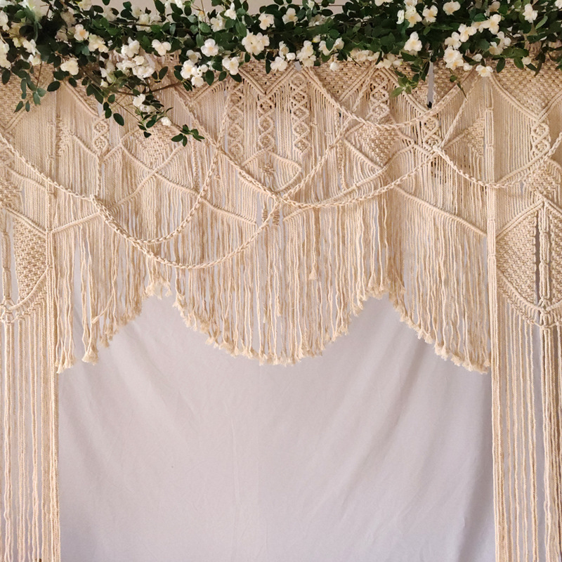 Width2m Wedding Decoration Nordic Bohemian Handmade Cotton Rope Tassel Tapestry Woven B&BWoven Door Curtain