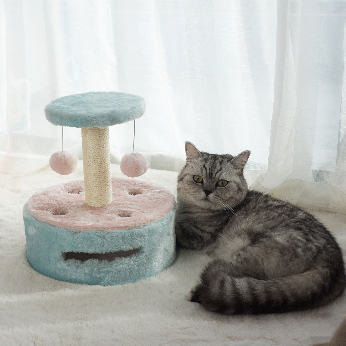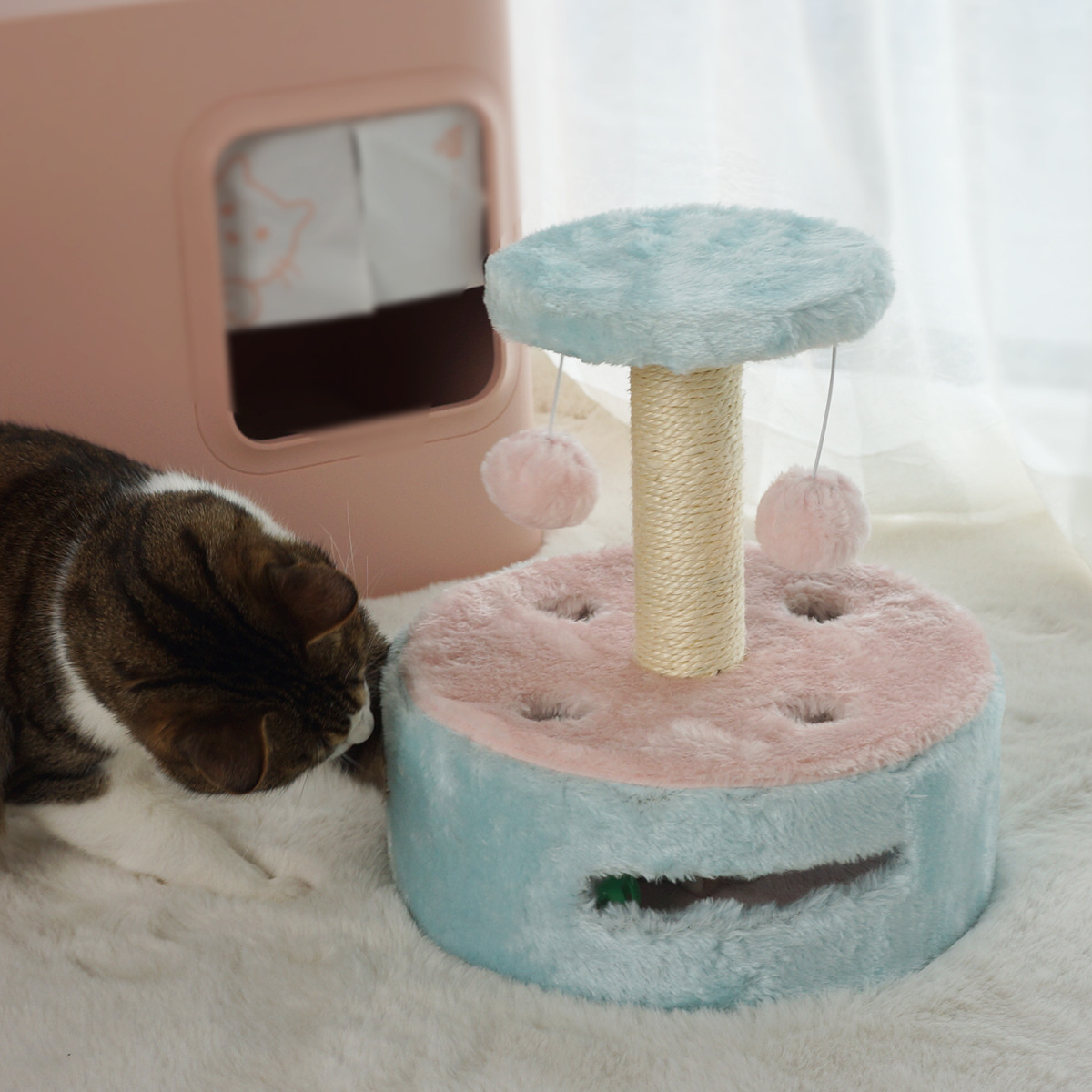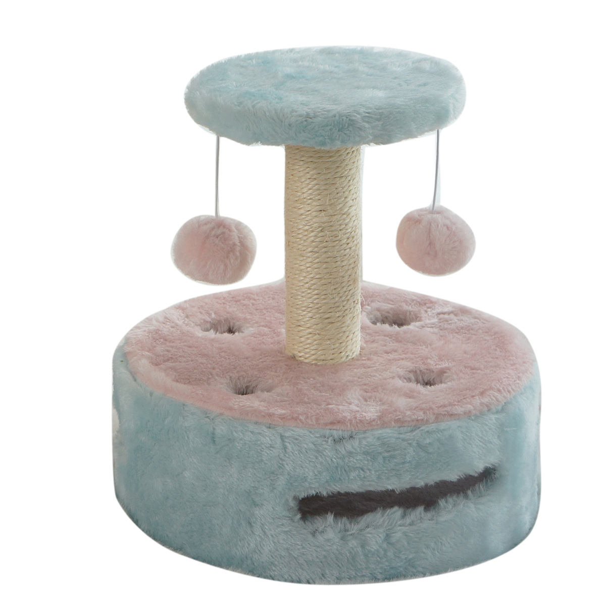 Macaron Color Short Plush Cat Scratching Post Cat Toy All-in-one Cat Climbing Frame With Bell Ball