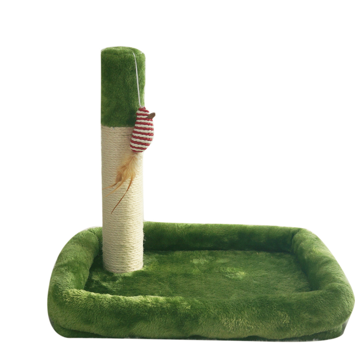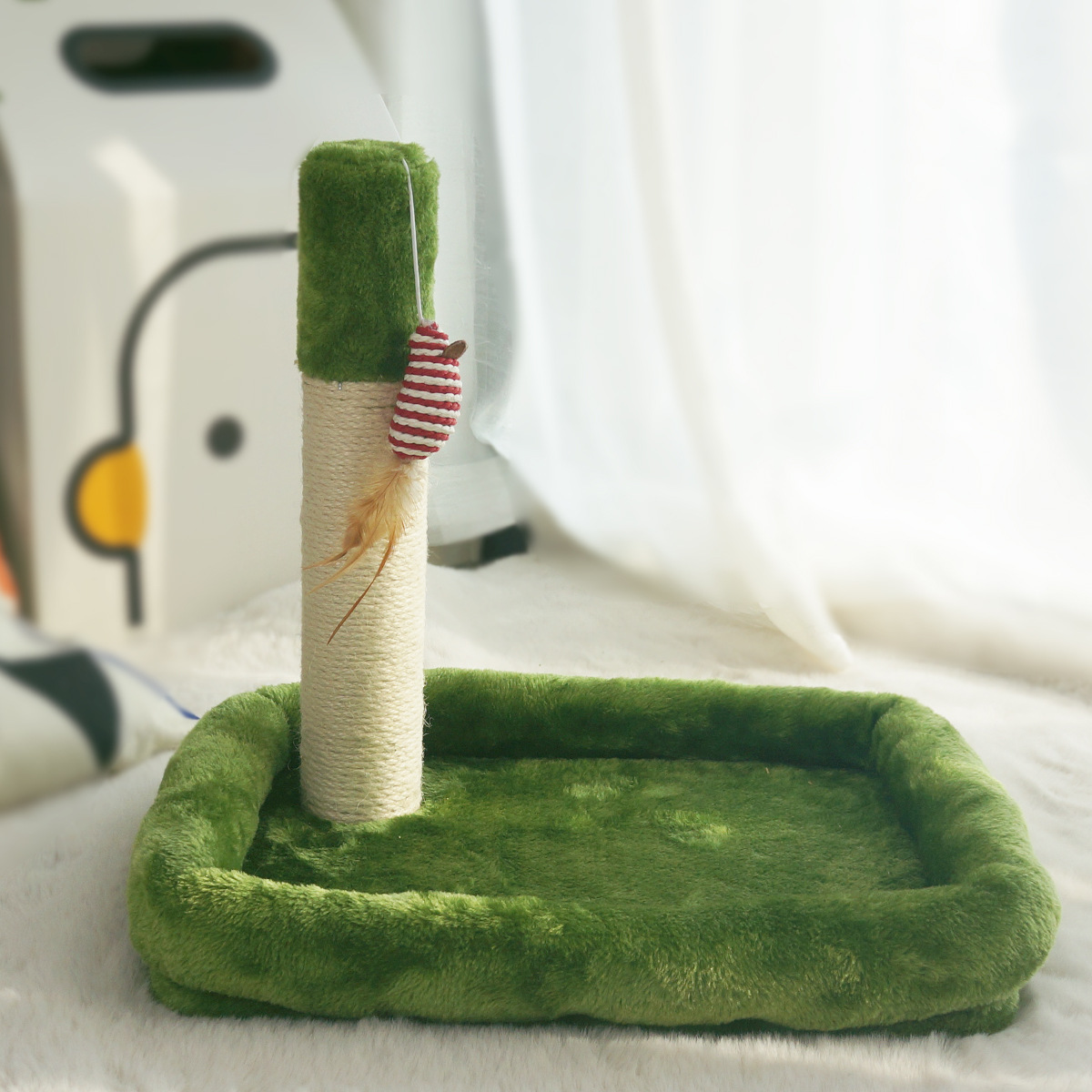 Pastoral Style Green Short Plush Cat Climbing Frame With Catnip Toy Cat Scratching Post Cat Nest Integrated Cat Scratching Board