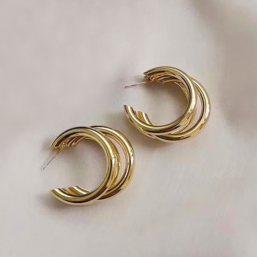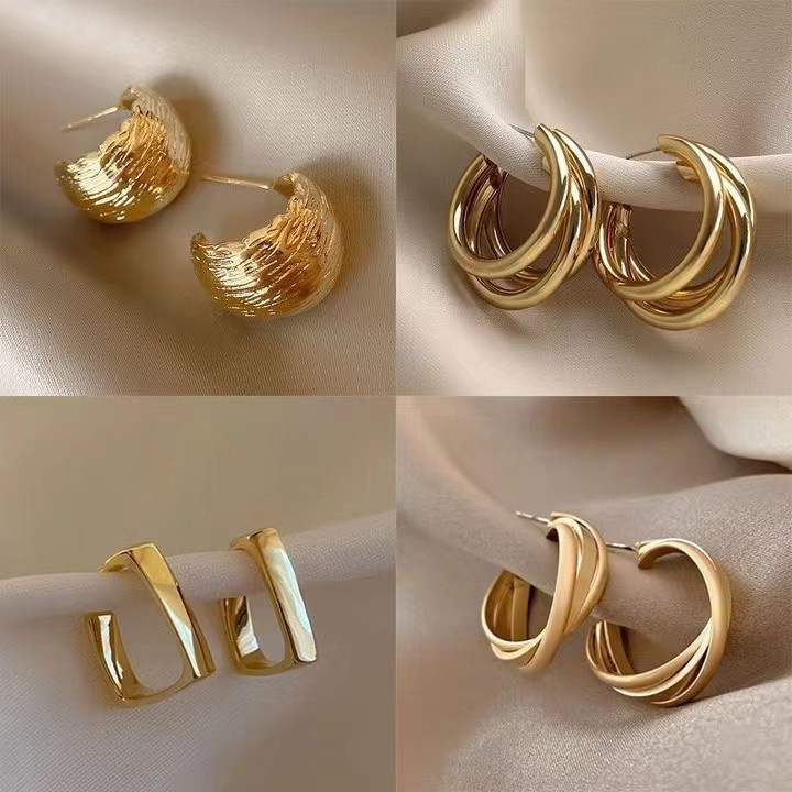 Autumn And Winter Atmospheric Accessories S925 Silver Needle Maillard Style Metal Earrings Retro High-end Earrings Hardware Girls