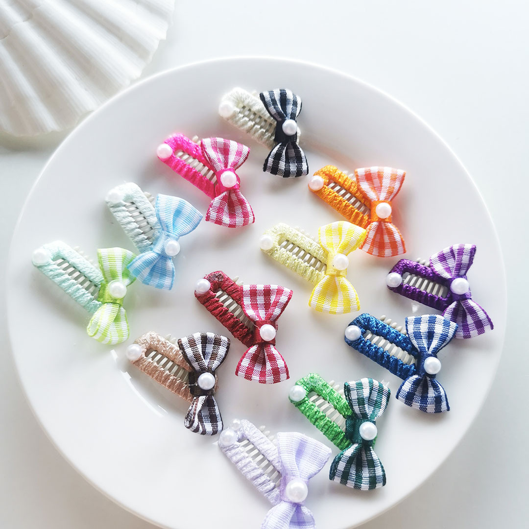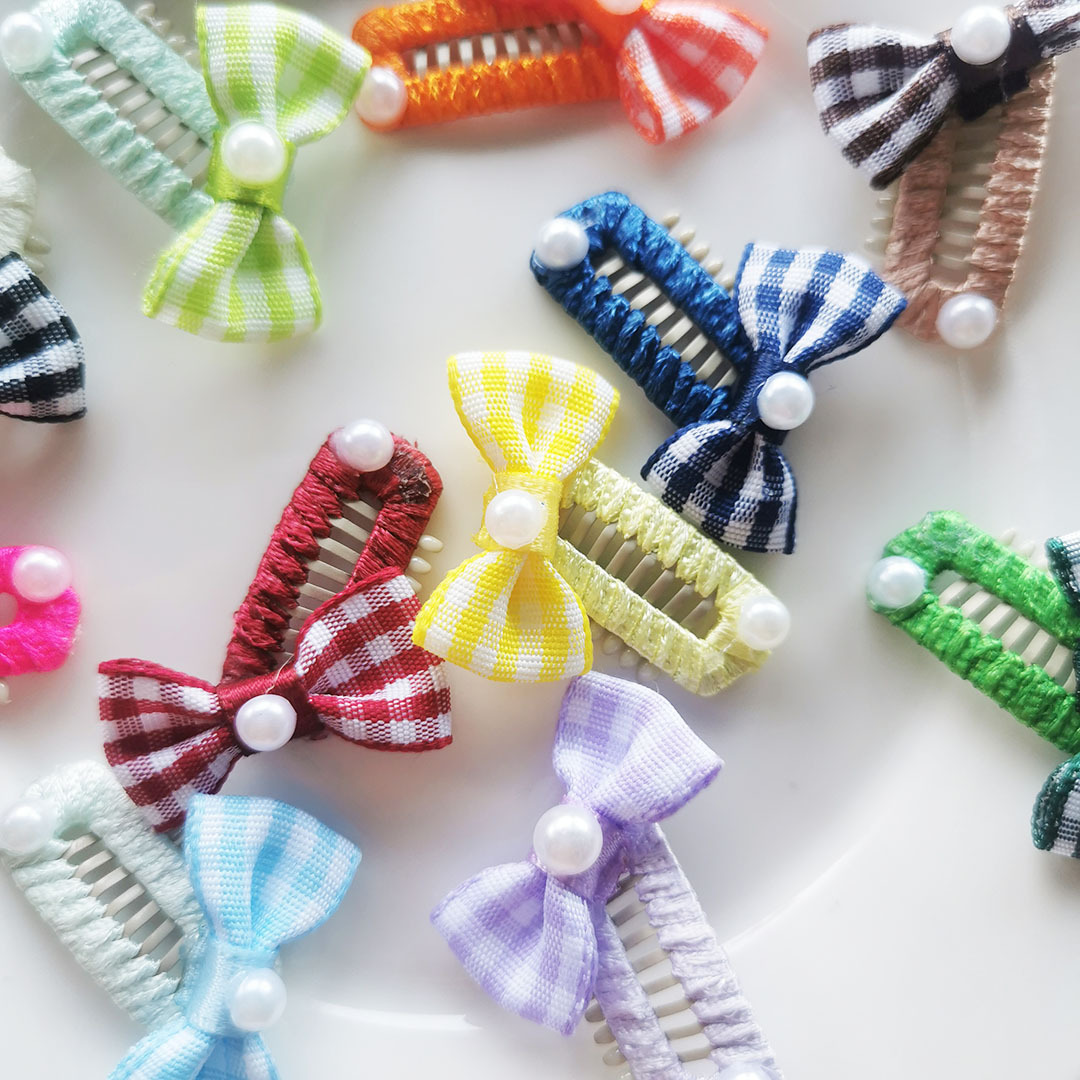 Plaid Bow Candy Color Cute Maltese Yorkshire Hair Accessories Mini Pet BBClip Hair Clip