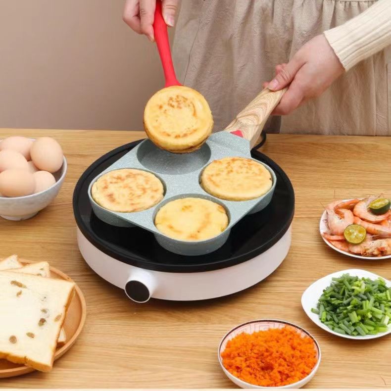 Directly Supplied Temperature-sensitive Four-hole Omelette Pot Household Medical Stone Non-stick Four-hole Breakfast Pot Omelette Artifact Small Pancake Pan