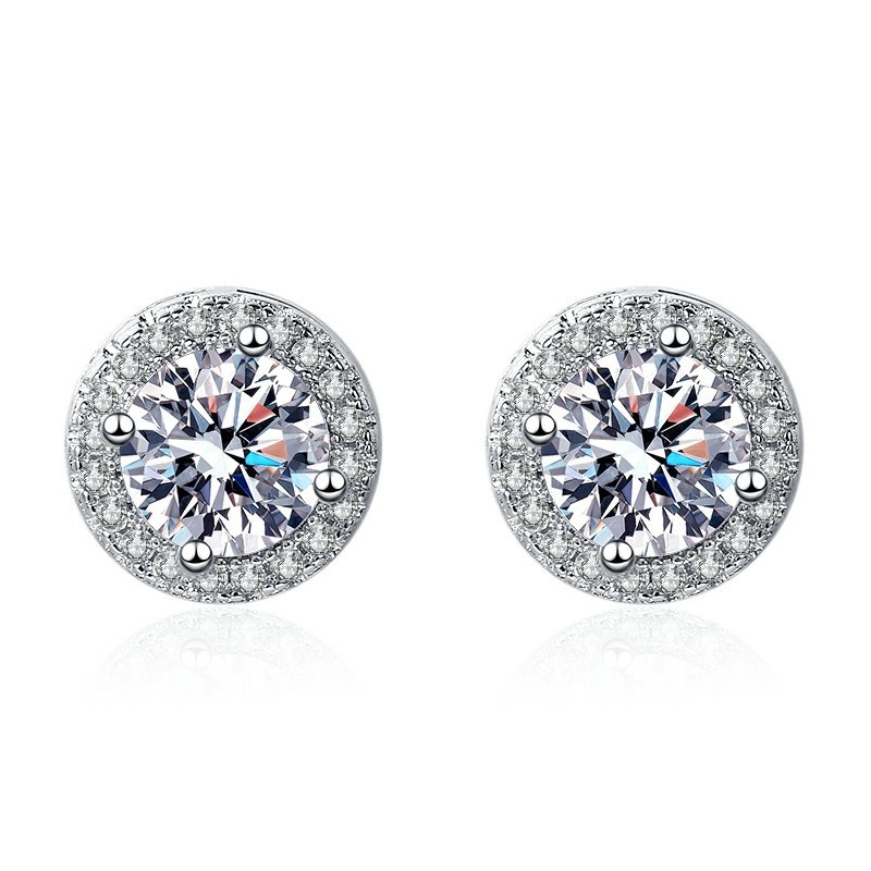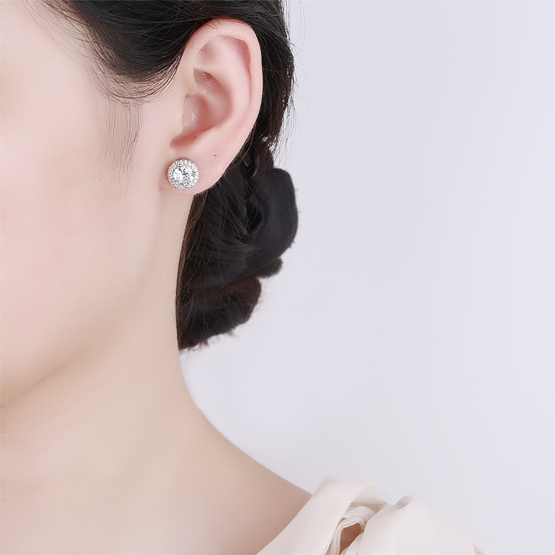 Imitation Moissanite Full Diamond Princess Round Bag Earrings Female Temperament Ladies Round Small Gift Earrings Earrings