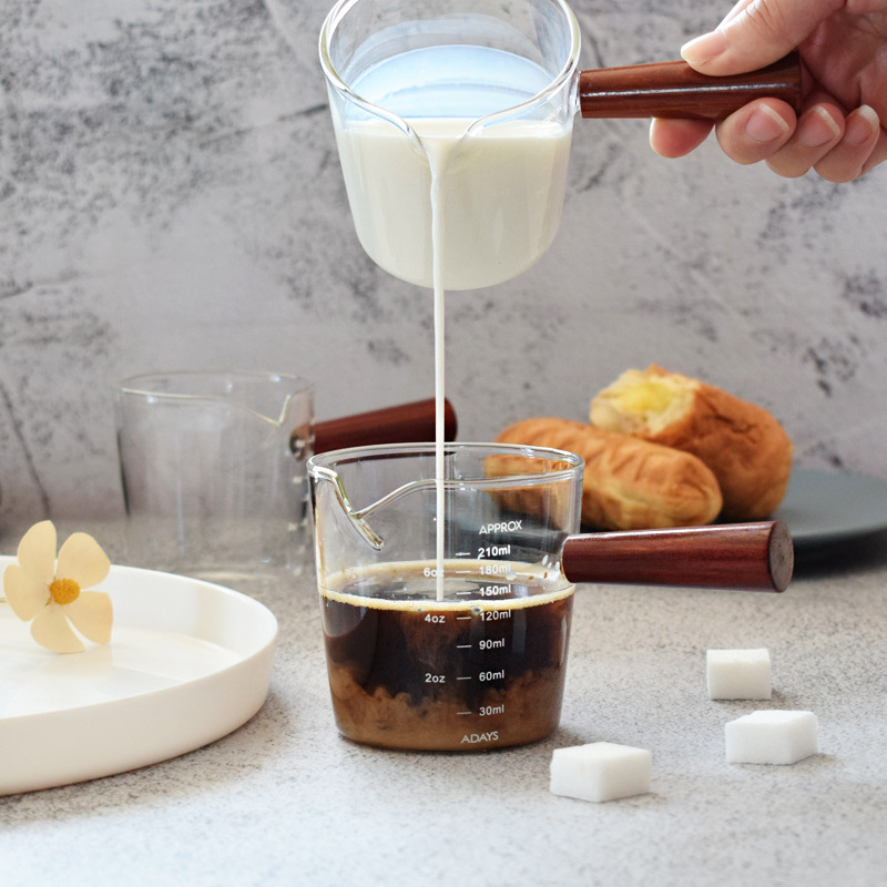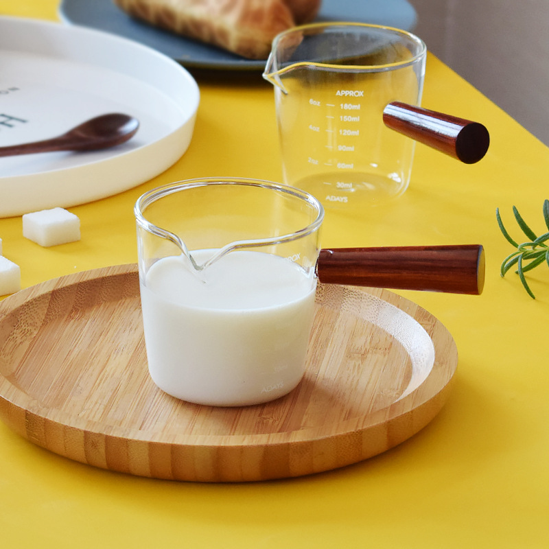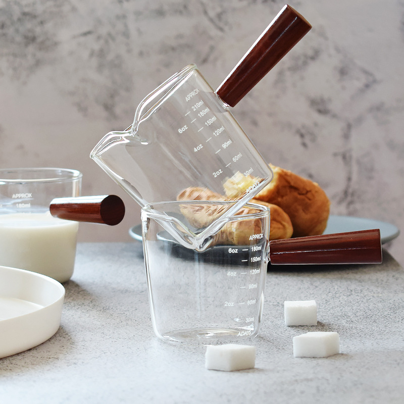 Extracted Espresso Milk Cup,Heat-resistant Glass,Wooden Handle,Scale,Milk Jug,Sauce Pouring Milk Jug,Cup