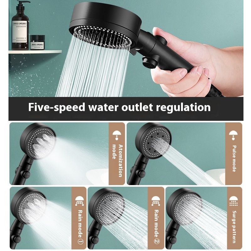 Black Five-speed Shower Head Booster Nozzle Household Rain Water Heater Bath Heater Bath Set One-click Water Stop