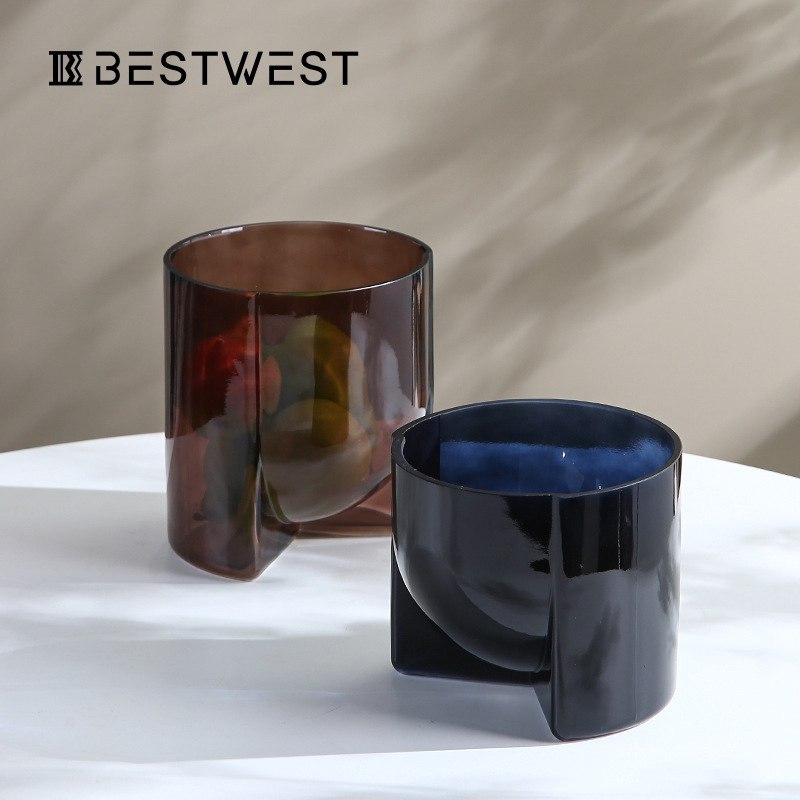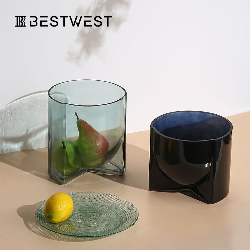 Best West Geometric Creative Transparent Glass Fruit Plate Home Living Room Fruit Bowl Home Candy Plate