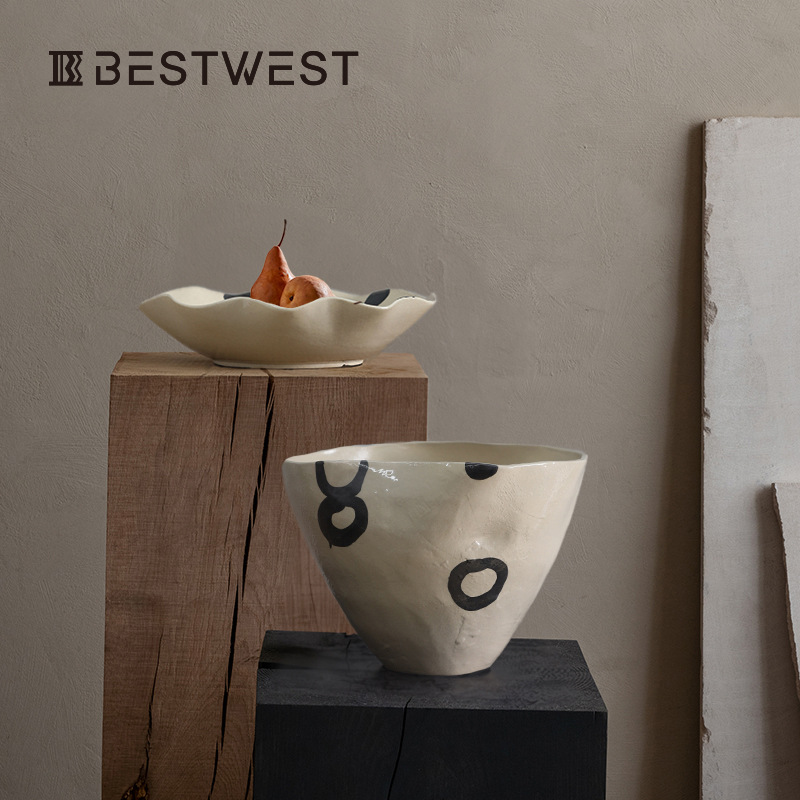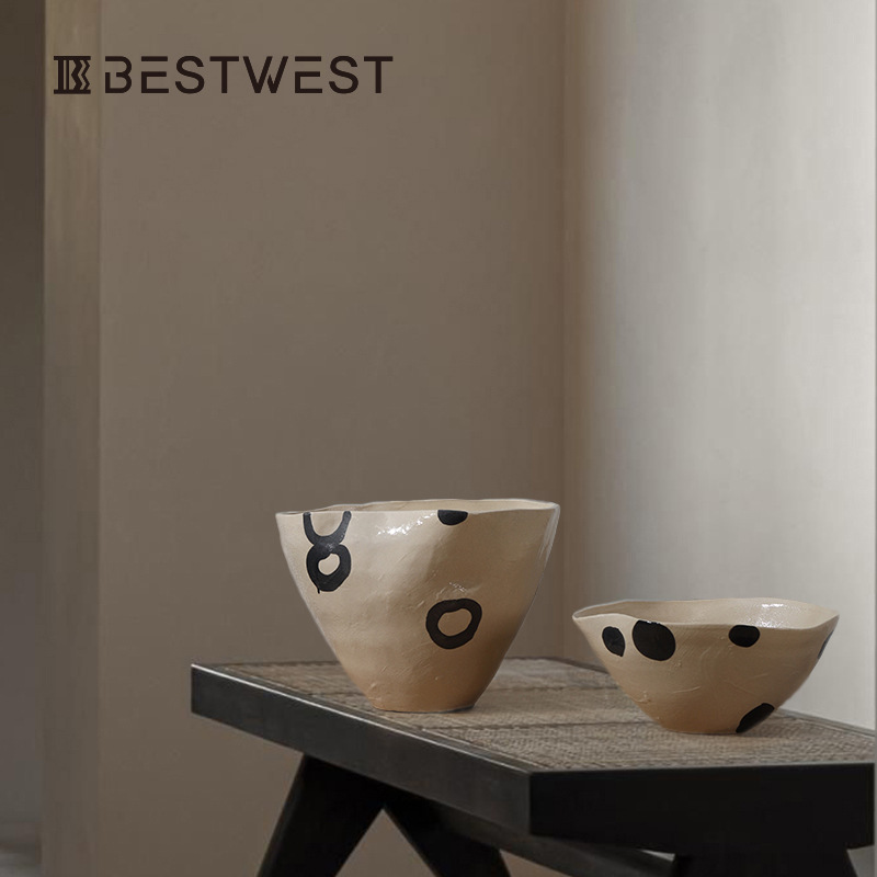 Best West Creative Wabi-sabi Style Glazed Ceramic Dry Fruit Plate Chinese Style Home Living Room Nut Snack Plate