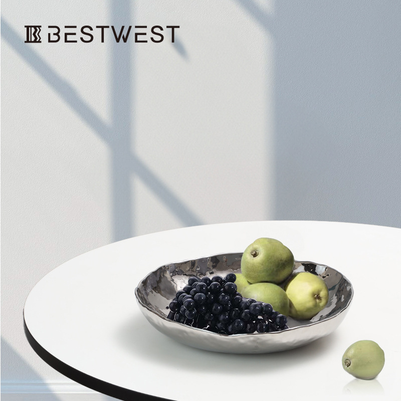Best West Creative Gold And Silver Electroplated Ceramic Dried Fruit Plate Light Luxury Home Living Room Nut Snack Plate
