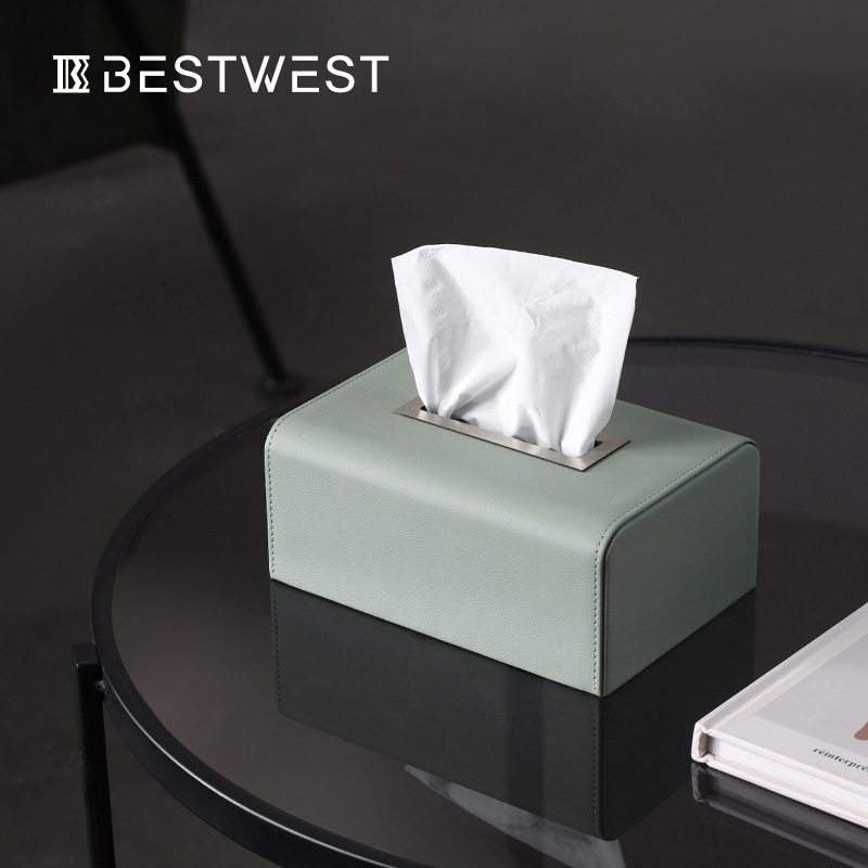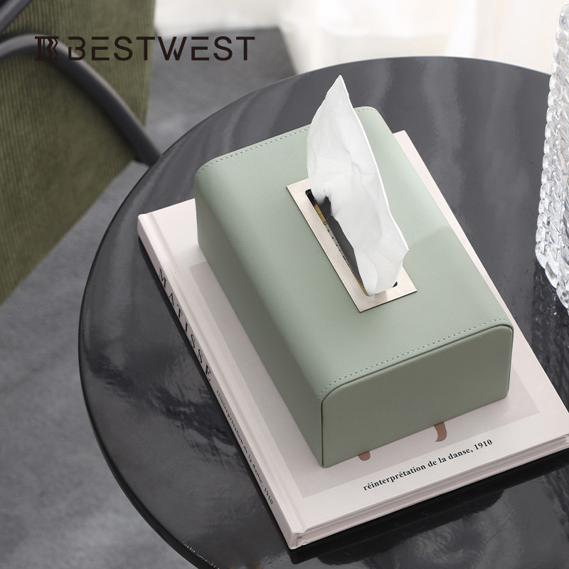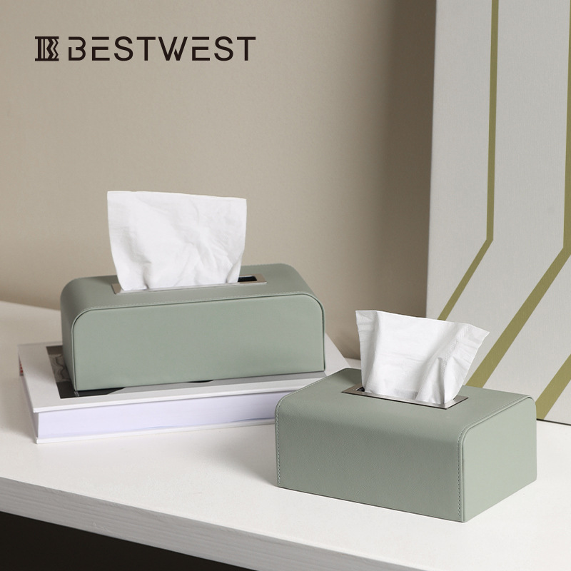 Best West Simple Matcha Color High-end Light Luxury Leather Tissue Box For Home Dining Room Living Room Bedroom Tissue Box