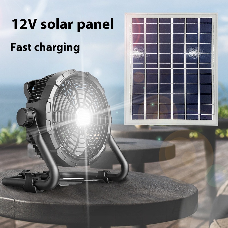 Solar Charging Camping Fan Lamp Outdoor Fishing Strong Wind Solar Panel Floor Fan