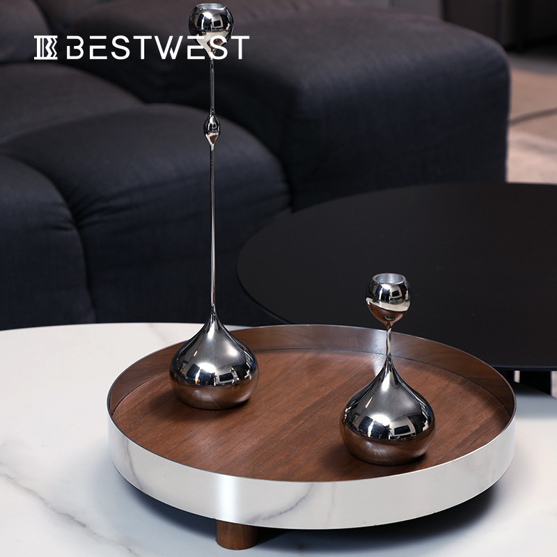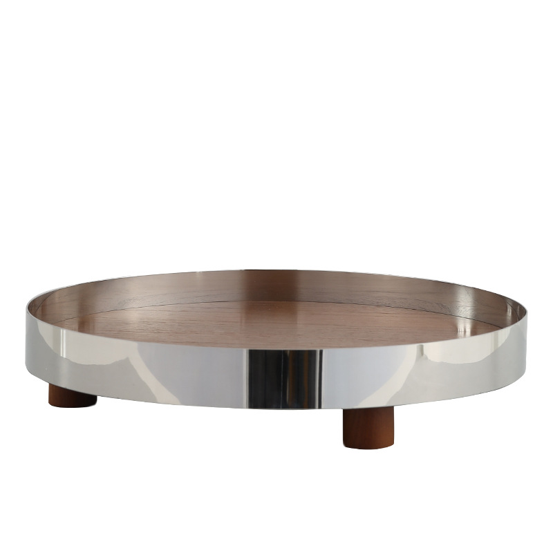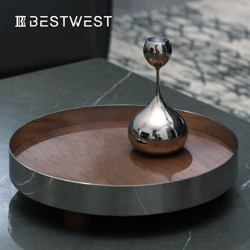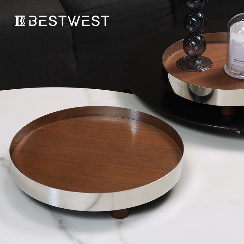 Best West High-end Metal Round Solid Wood Pallet Deep Dish Home Decoration Model Room Storage Tray
