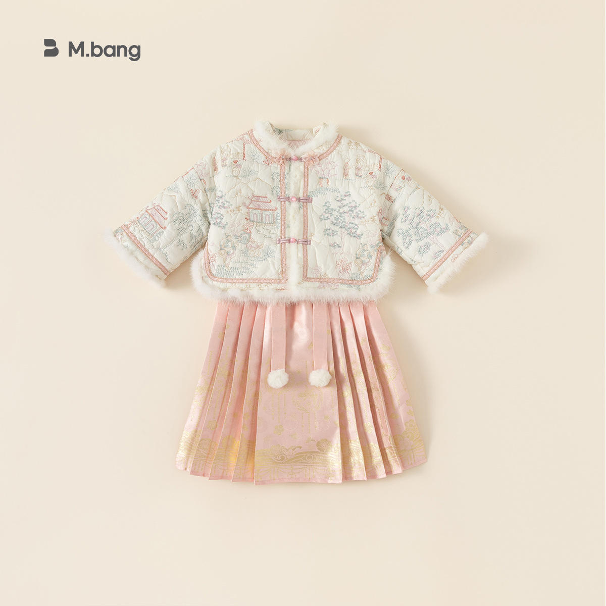 Babycity Girls Hanfu Two-piece Set Autumn And Winter Chinese Style Suit Year's Wear Children's Chinese Horse Face Skirt DQ23165
