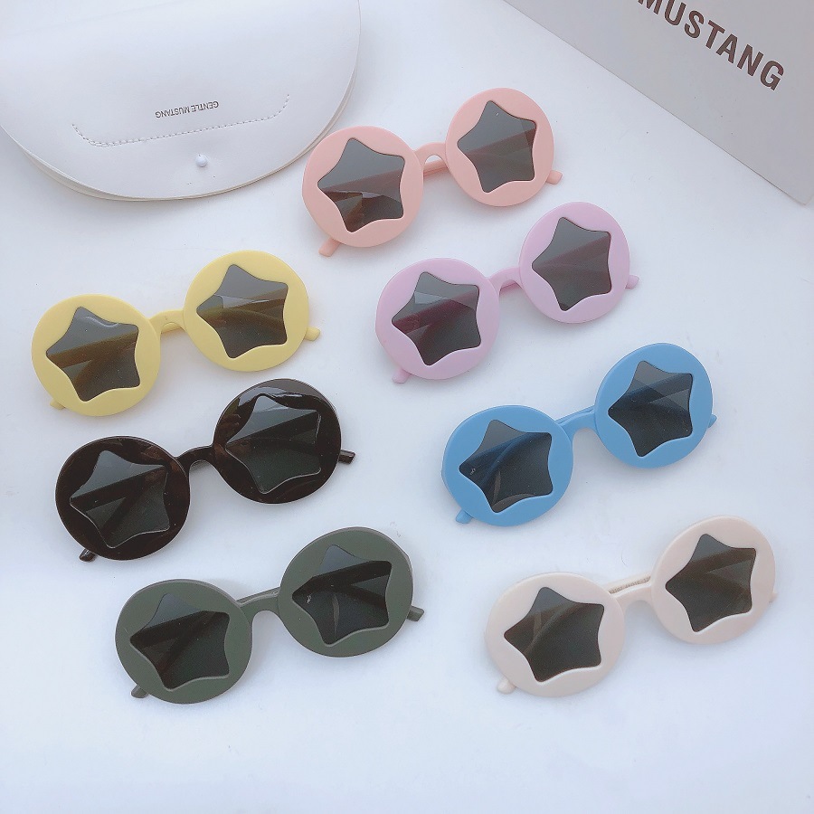 Round Frame Five-pointed Star Children's Sunglasses Frosted Style Boys And Girls Sunglasses Cute Cute Baby Photo Glasses