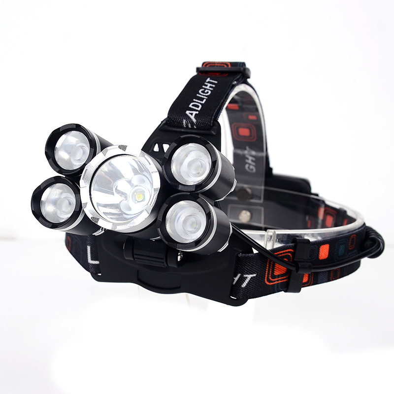 5 LEDHeadlight T6 Strong Light Headlight5 Light Rechargeable Aircraft Light Headlight Super Bright Fishing Light Miner's Light