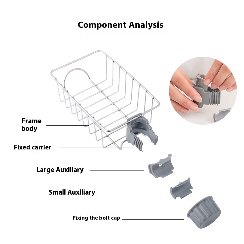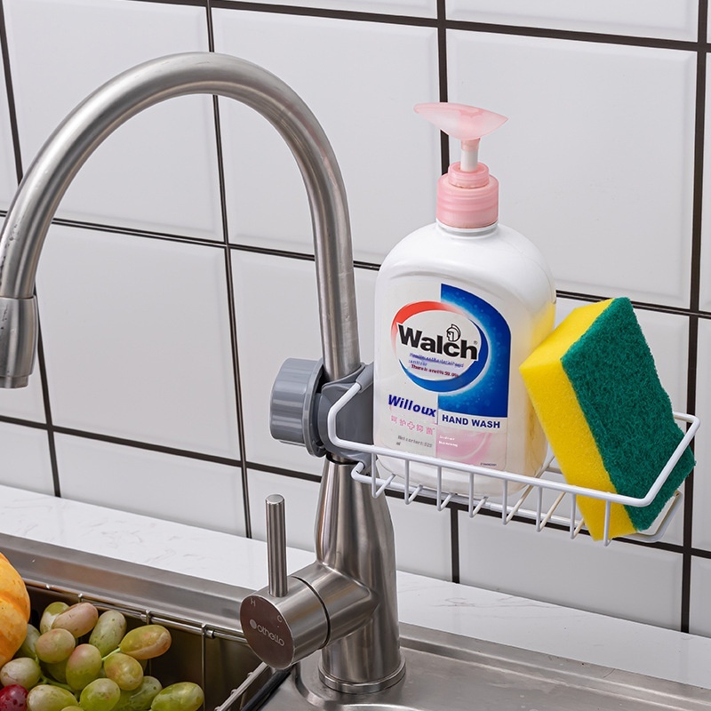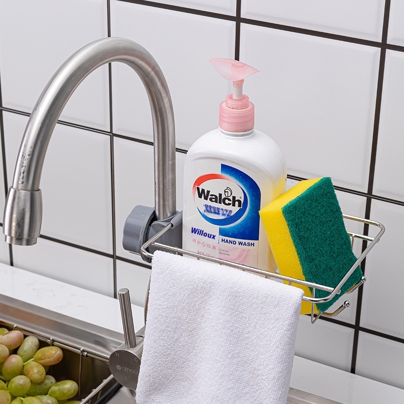 Stainless Steel Home Kitchen Faucet Storage Rack Bathroom Sink Rag Soap Storage Drain Rack No Punching
