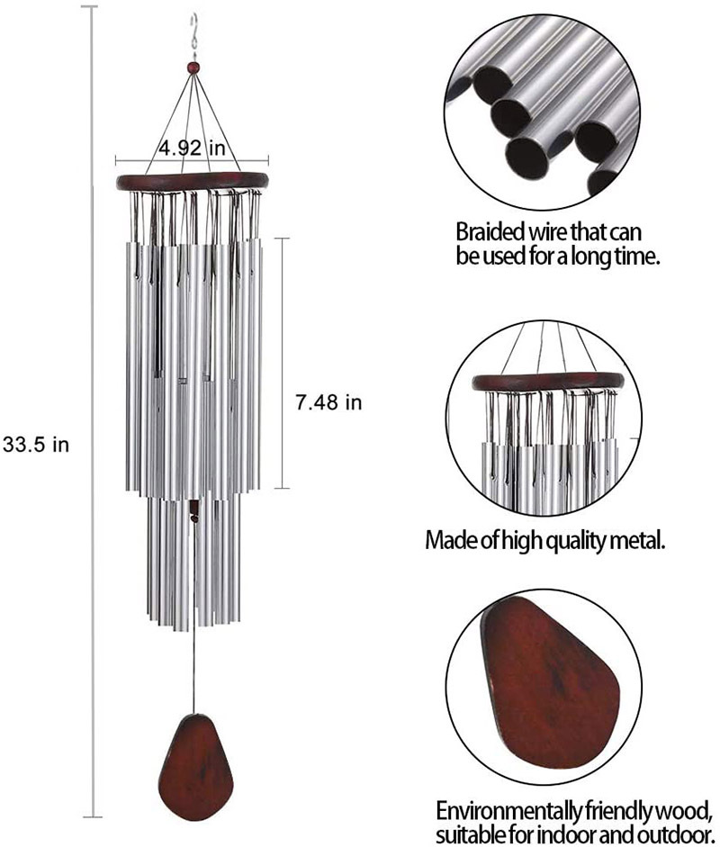 Pine Wood27-tube Silver Bell Metal Multi-tube Rust-proof Wind Chime Home Outdoor Hanging Wind Chime Birthday Blessing Gift
