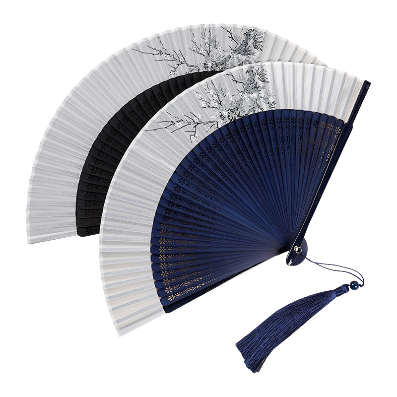 7-inch Antique Folding Fan Bamboo Hollow Fan Hanfu Ancient Costume Retro Crafts Bamboo Fan Tassel Fixed