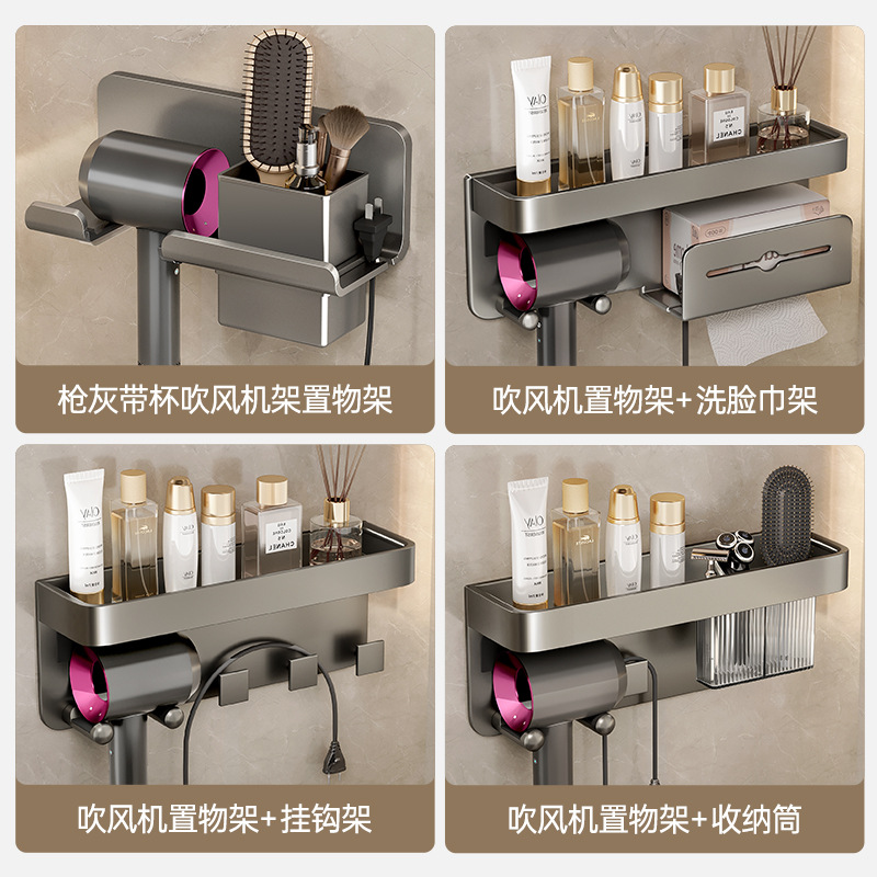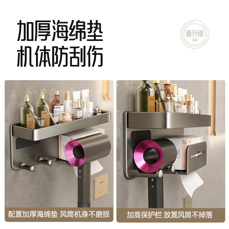 Hair Dryer Storage Rack Without Punching Holes Bathroom Wall-mounted Hair Dryer Bracket Bathroom Hair Dryer Storage Shelf Hanger