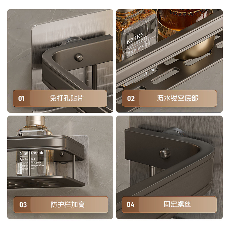 Gun Ash Bathroom Storage Rack No Punching Bathroom Shower Toilet Toilet Washbasin Wall-mounted Storage Rack