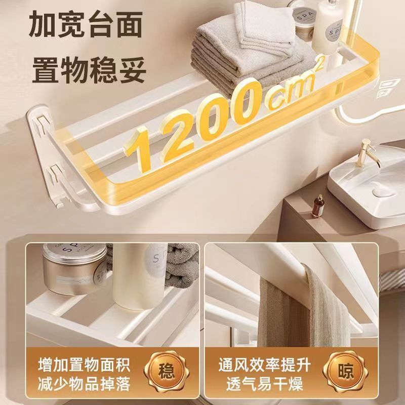 Cream Style Space Aluminum Towel Rack Without Punching Toilet Bathroom Storage Rack Kit Toilet Toilet Towel Rack